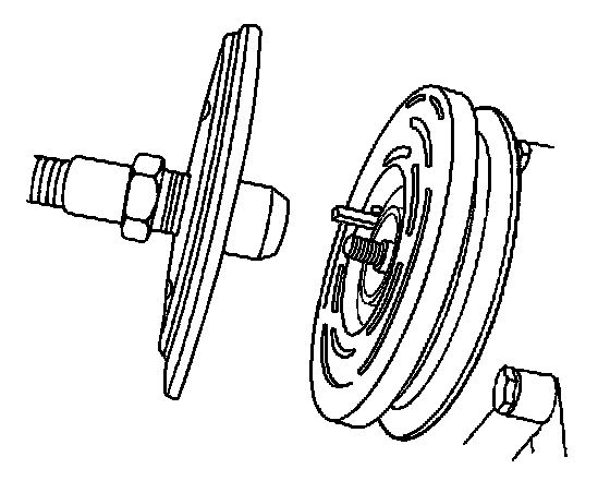 IMPORTANT: If the center bolt is threaded fully onto the end of the compressor shaft, or if the body of the J 33013-B (1) is held and the center bolt is rotated, the key will wedge and could break the clutch drive plate and the hub assembly.