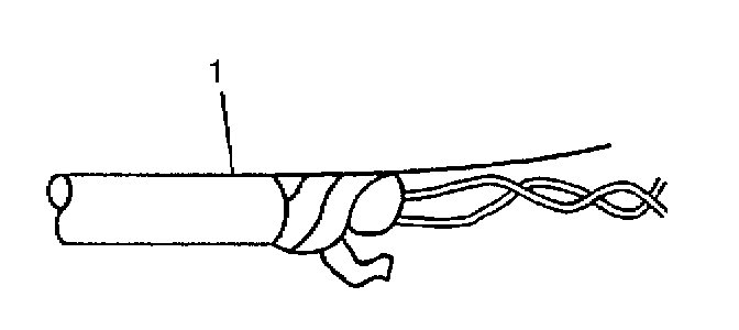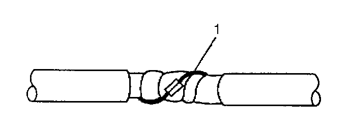 1. Remove the outer jacket (1). Use care not to cut into the drain wire of the mylar tape.