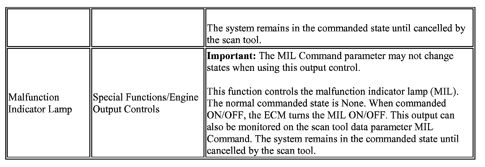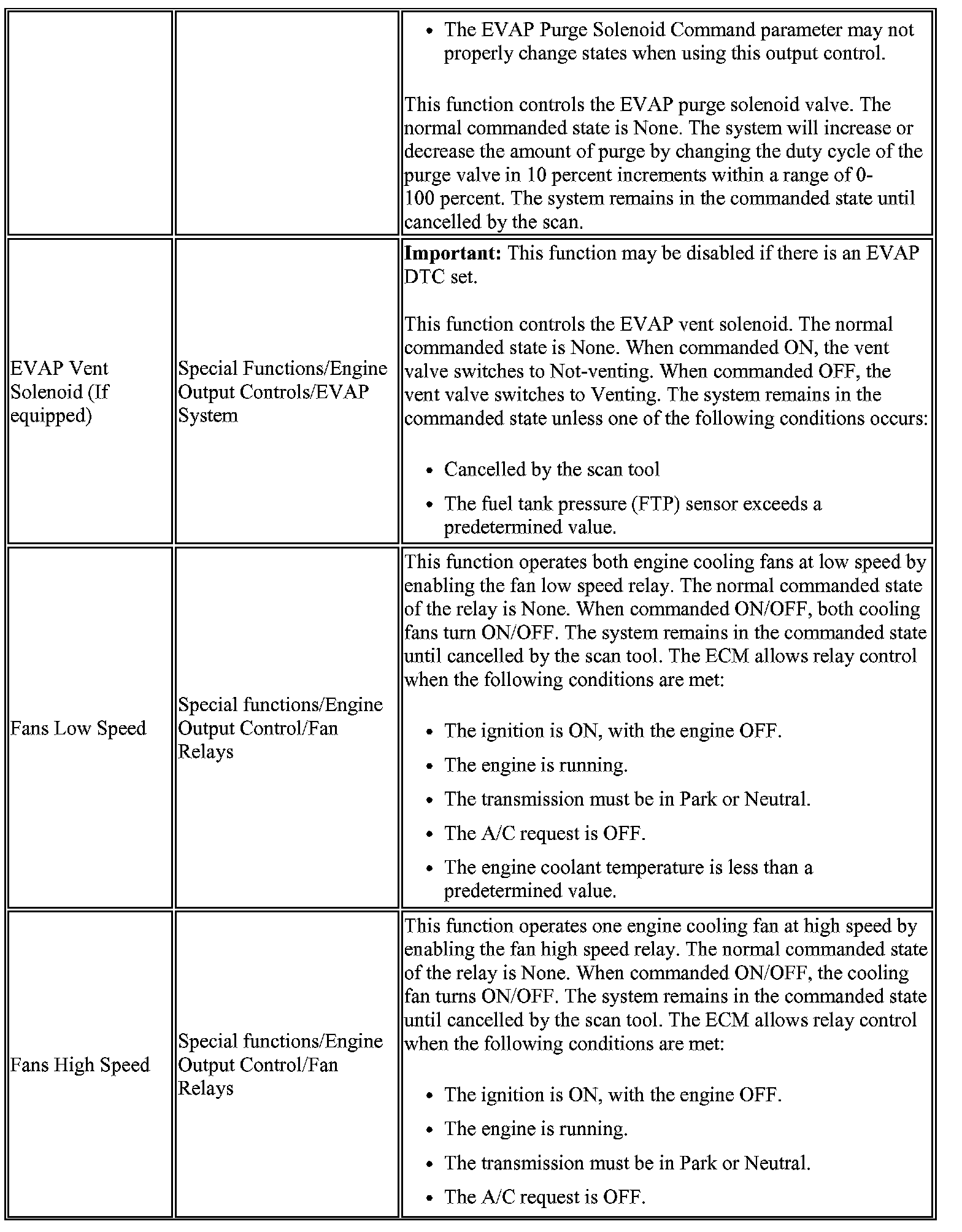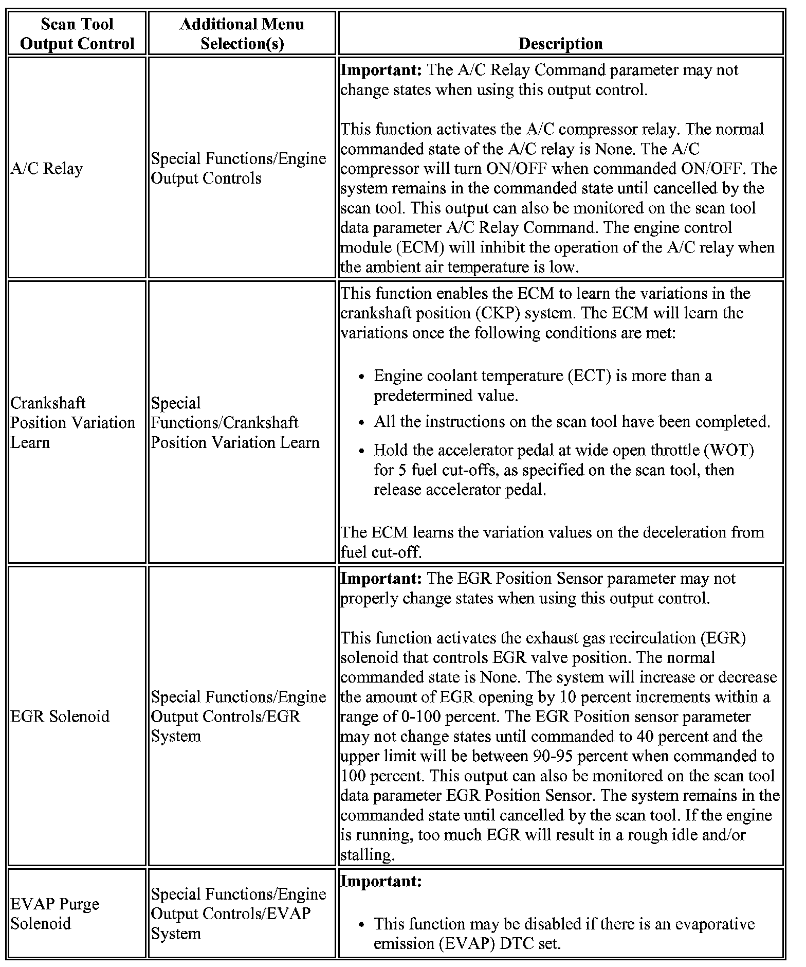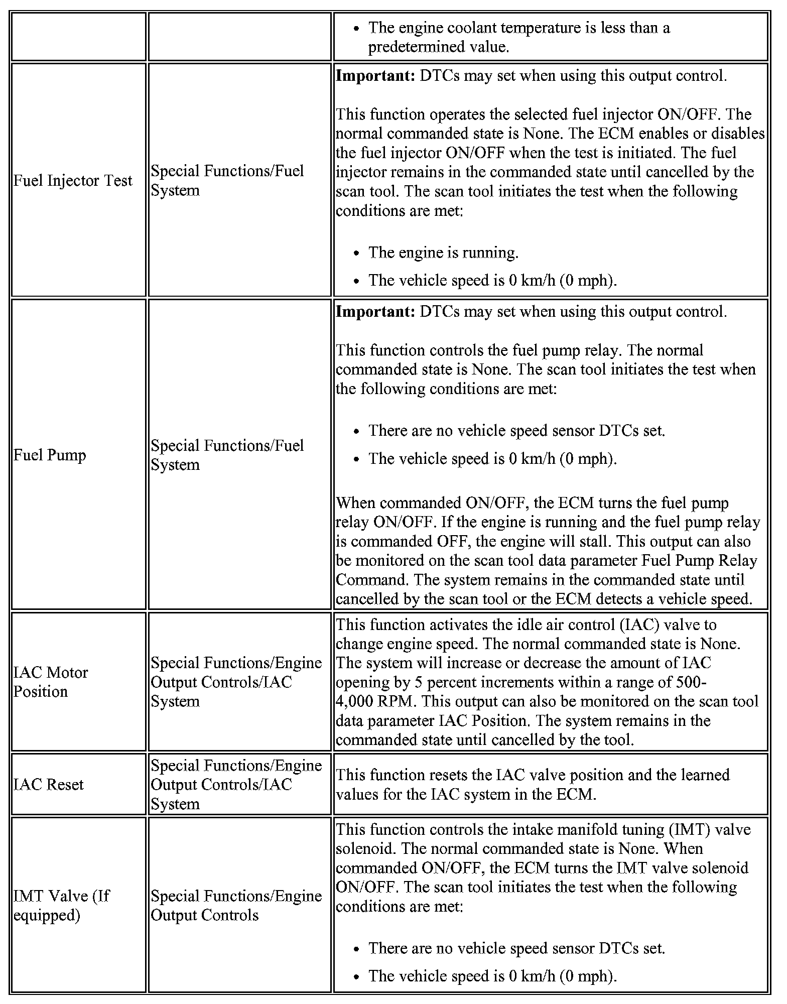 Scan Tool Output Controls (w/o Throttle Actuator Control)