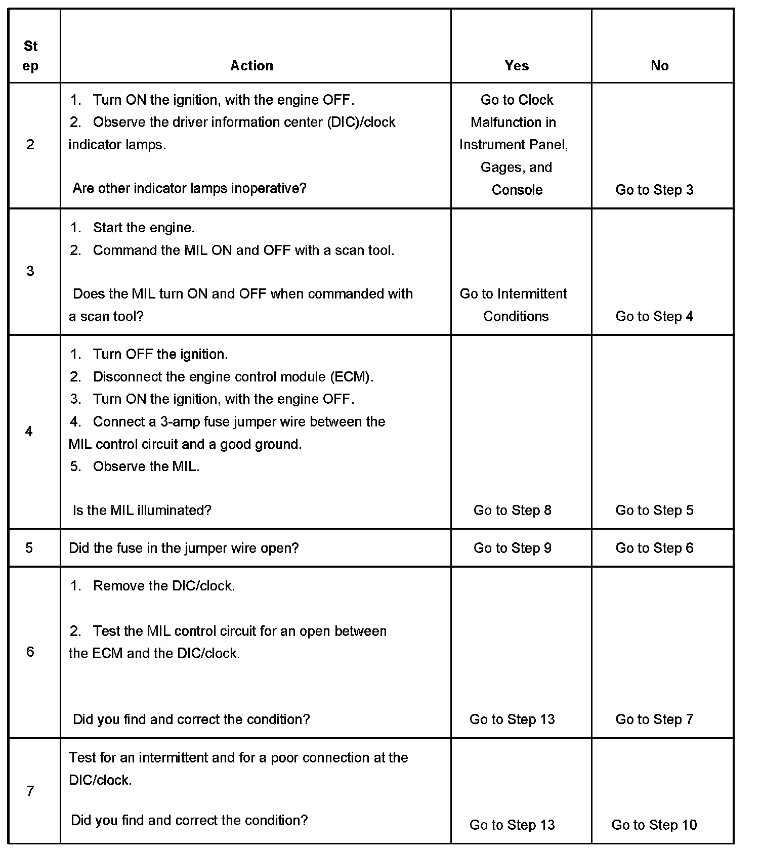 4. This step determines if the condition is with the MIL control circuit or the ECM.