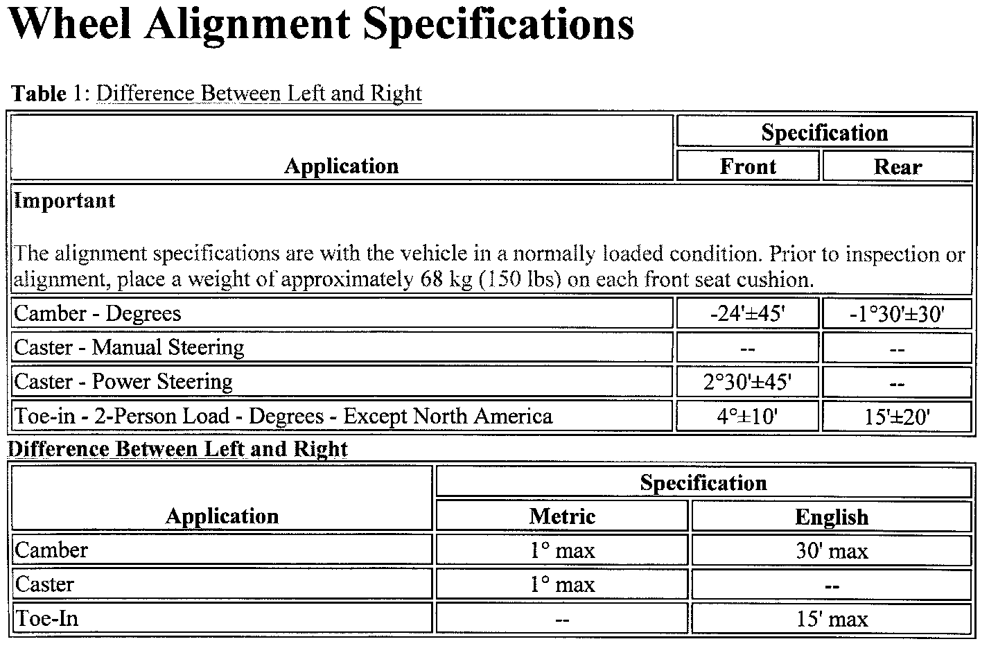 Wheel Alignment Specifications: