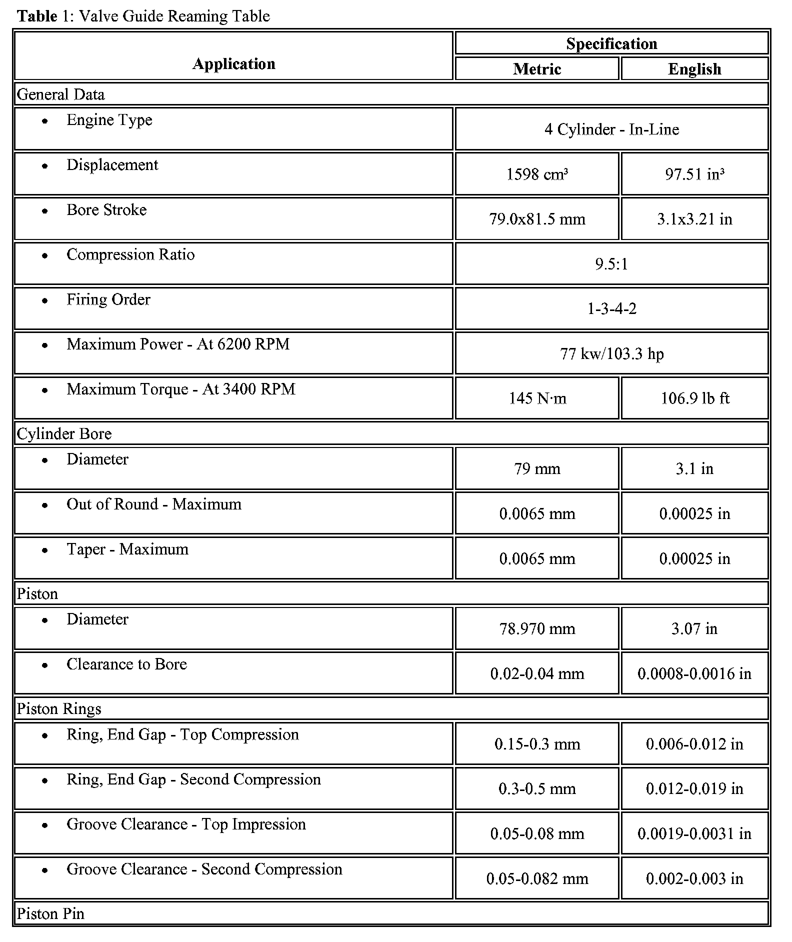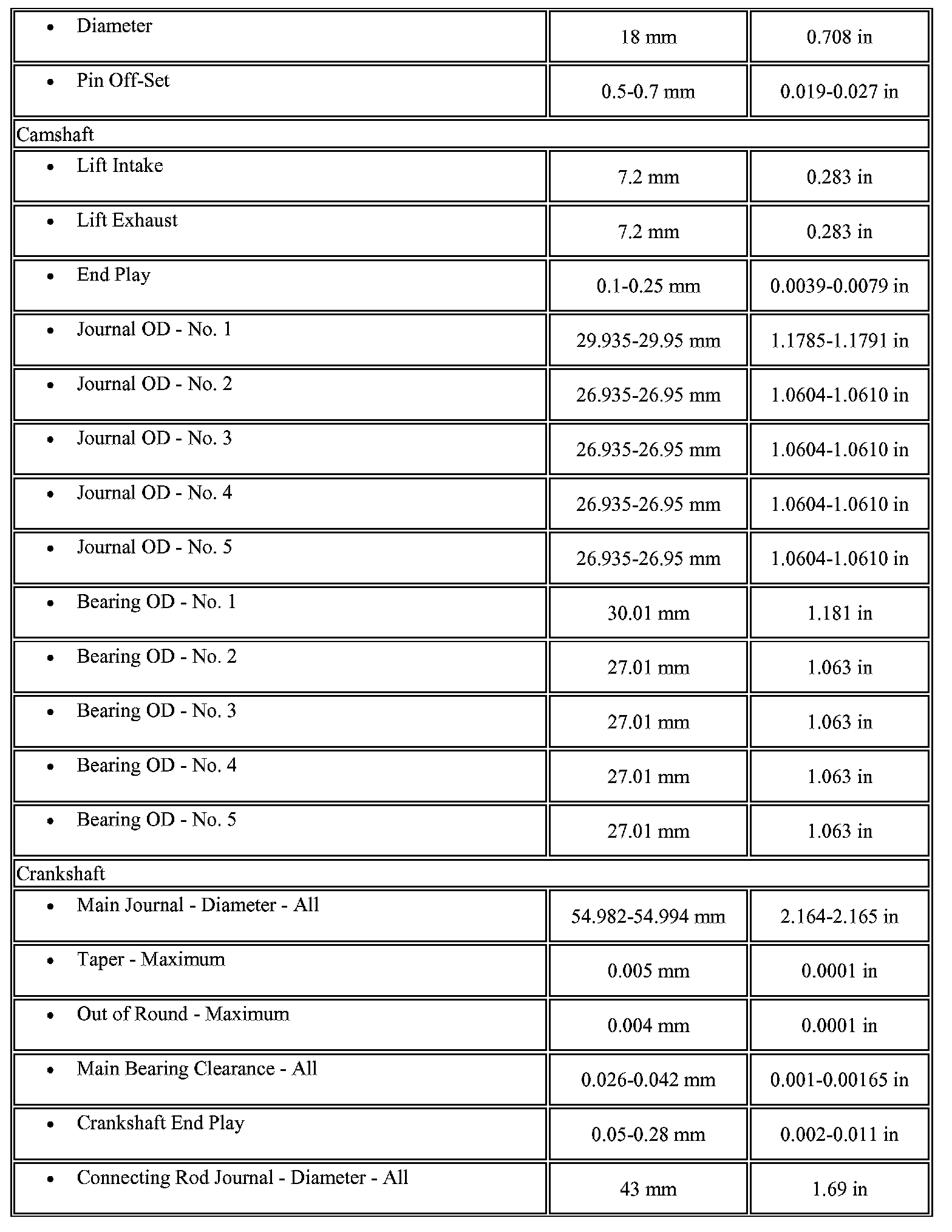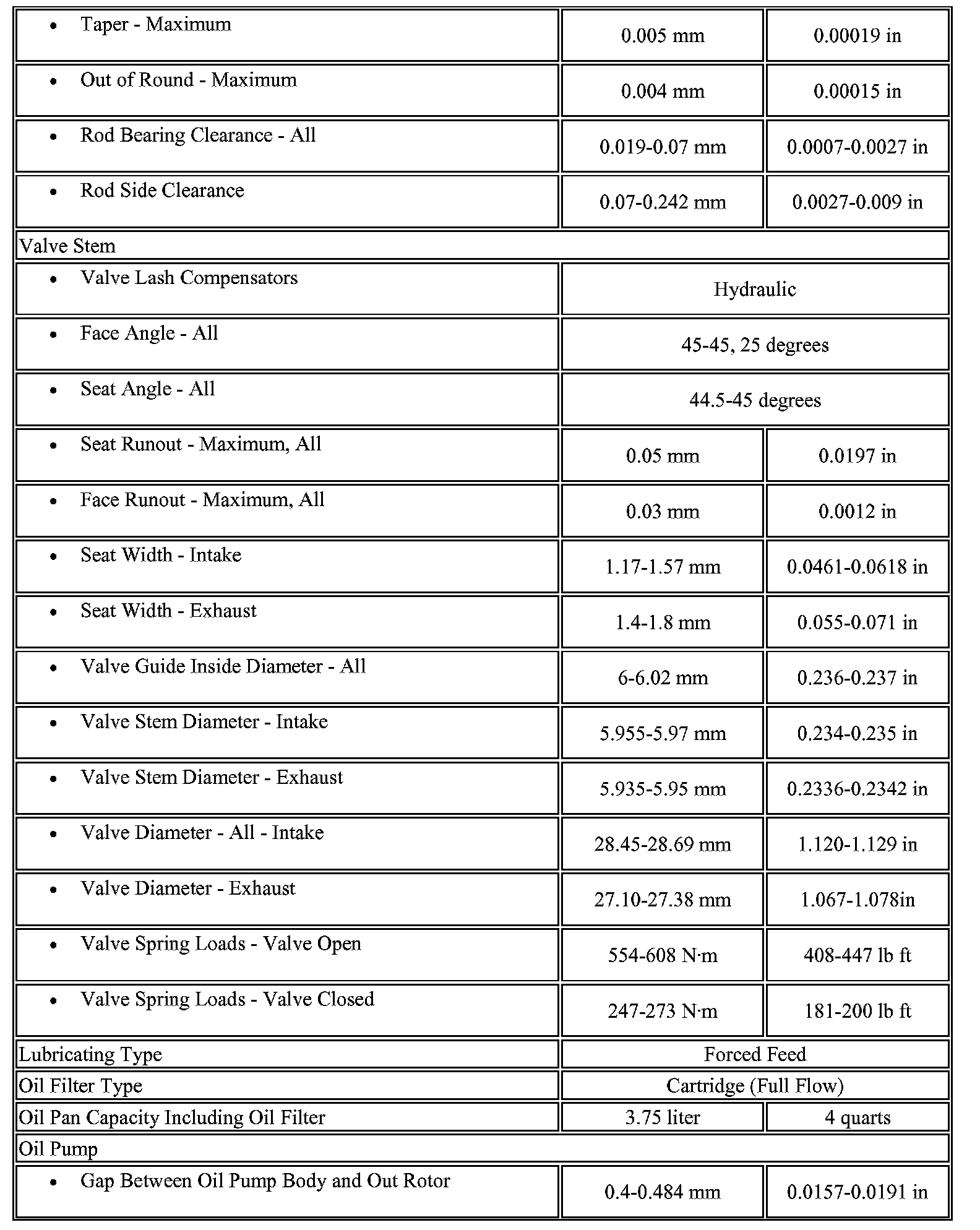 Engine Mechanical Specifications