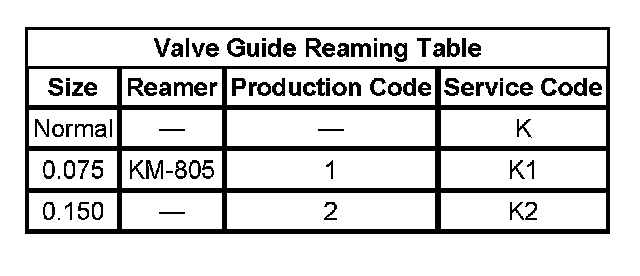 Valve Guide Reaming Table: