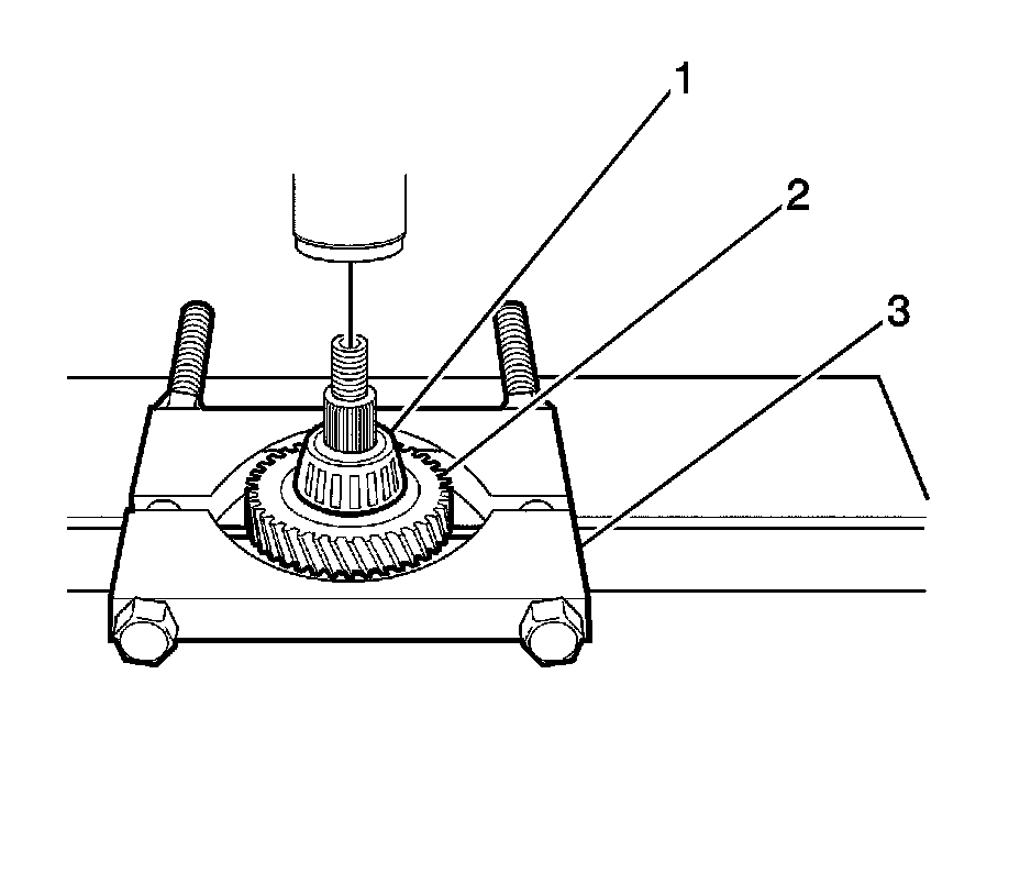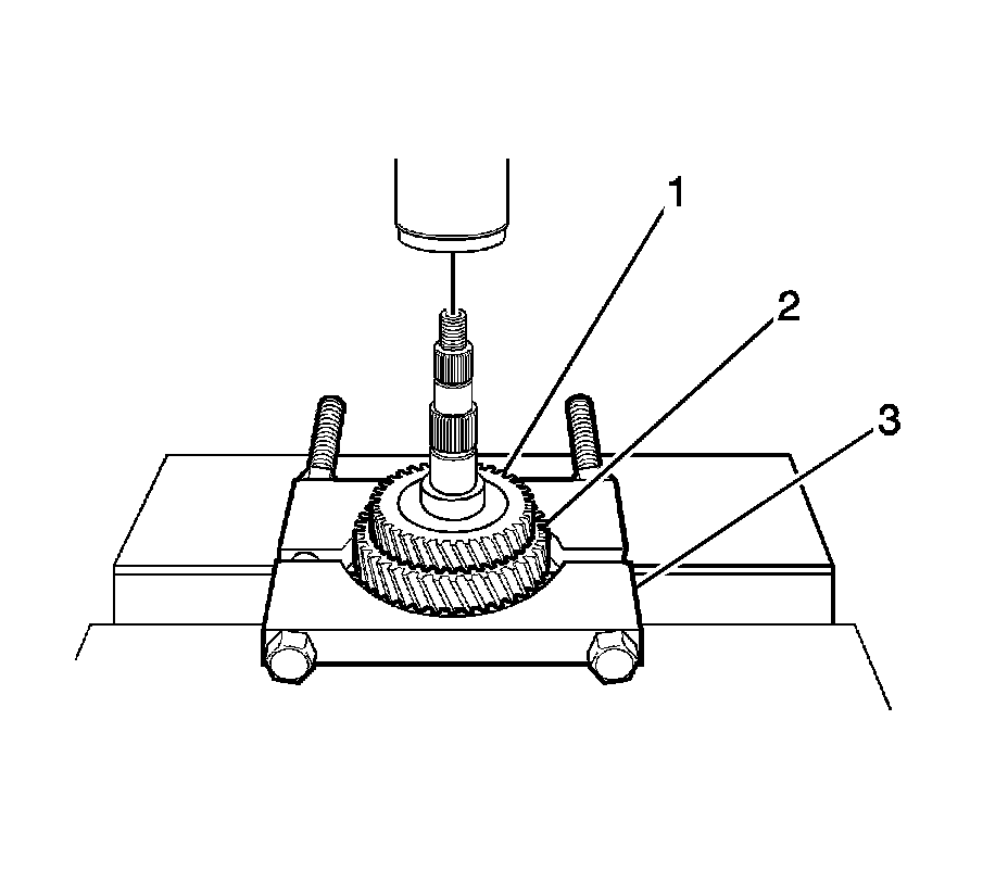 8. Remove the 3rd gear with the press (1).