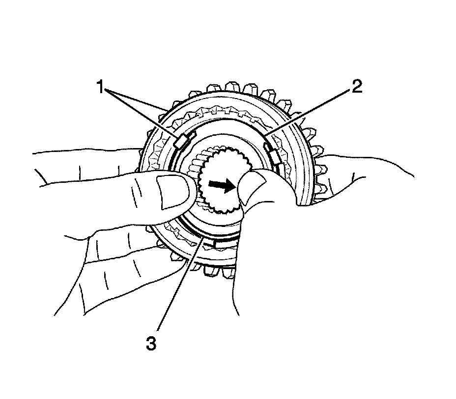 19. Disassemble the synchronizer springs (3).