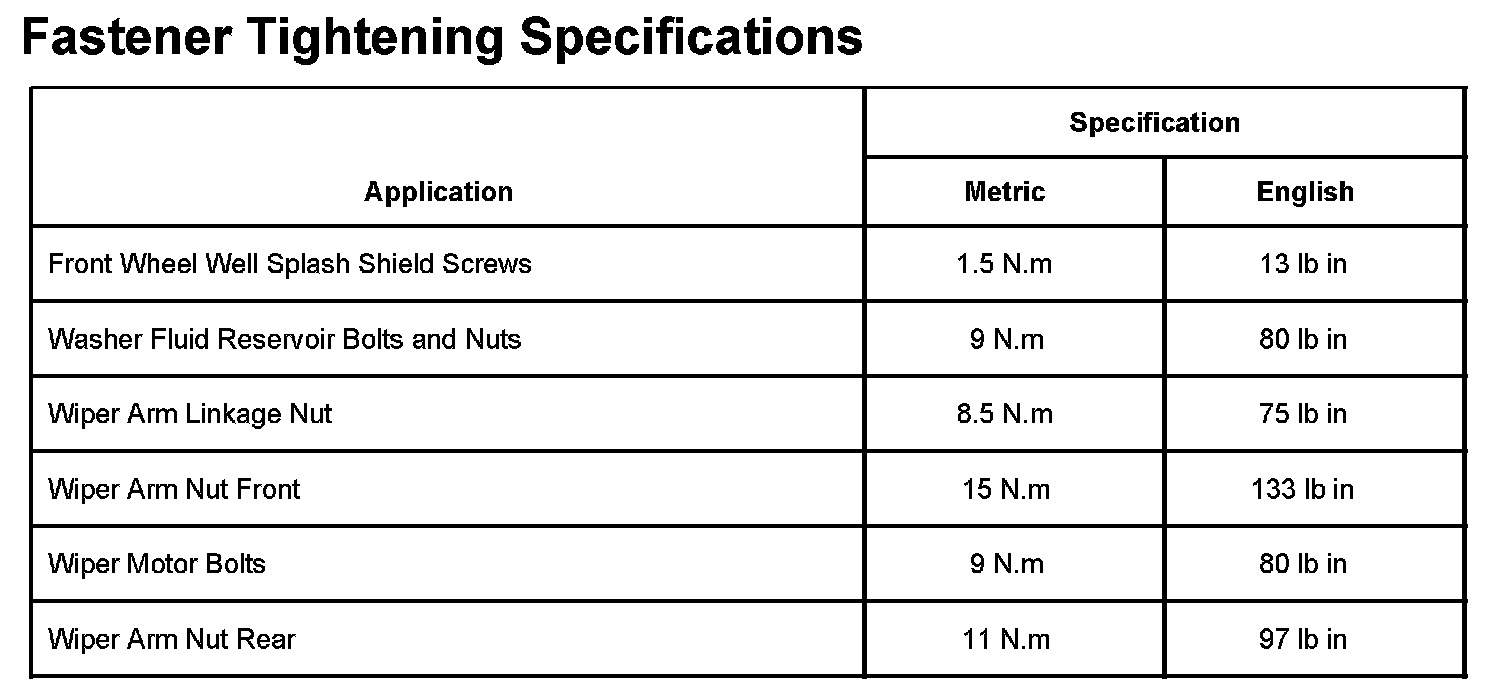 Wiper and Washer Systems: Specifications