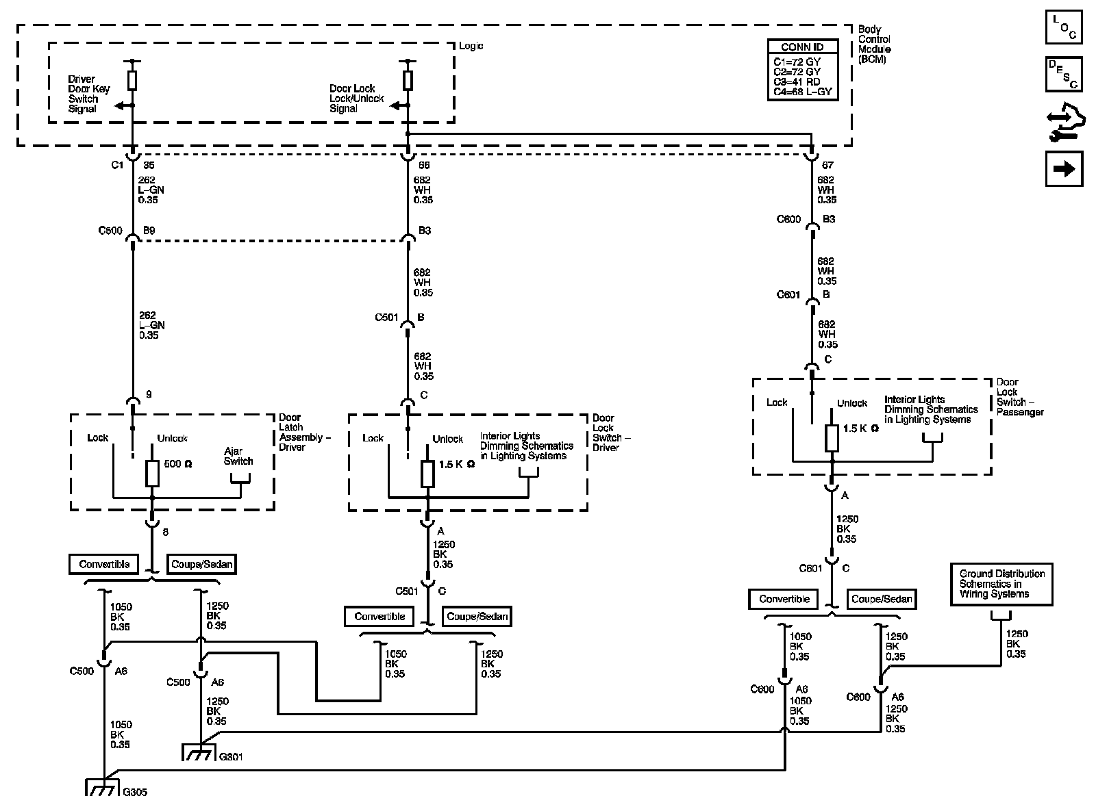 The locations for the Connectors, Grounds, Splices, and Grommets shown within these diagrams can be found via their numbers at Vehicle Locations