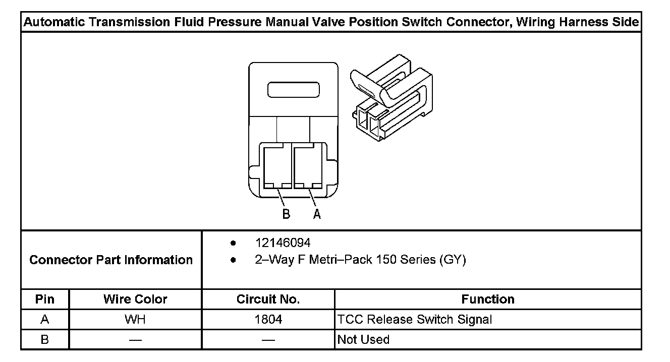 Automatic Transmission Fluid Pressure Manual Valve Position Switch Connector, Wiring Harness Side: