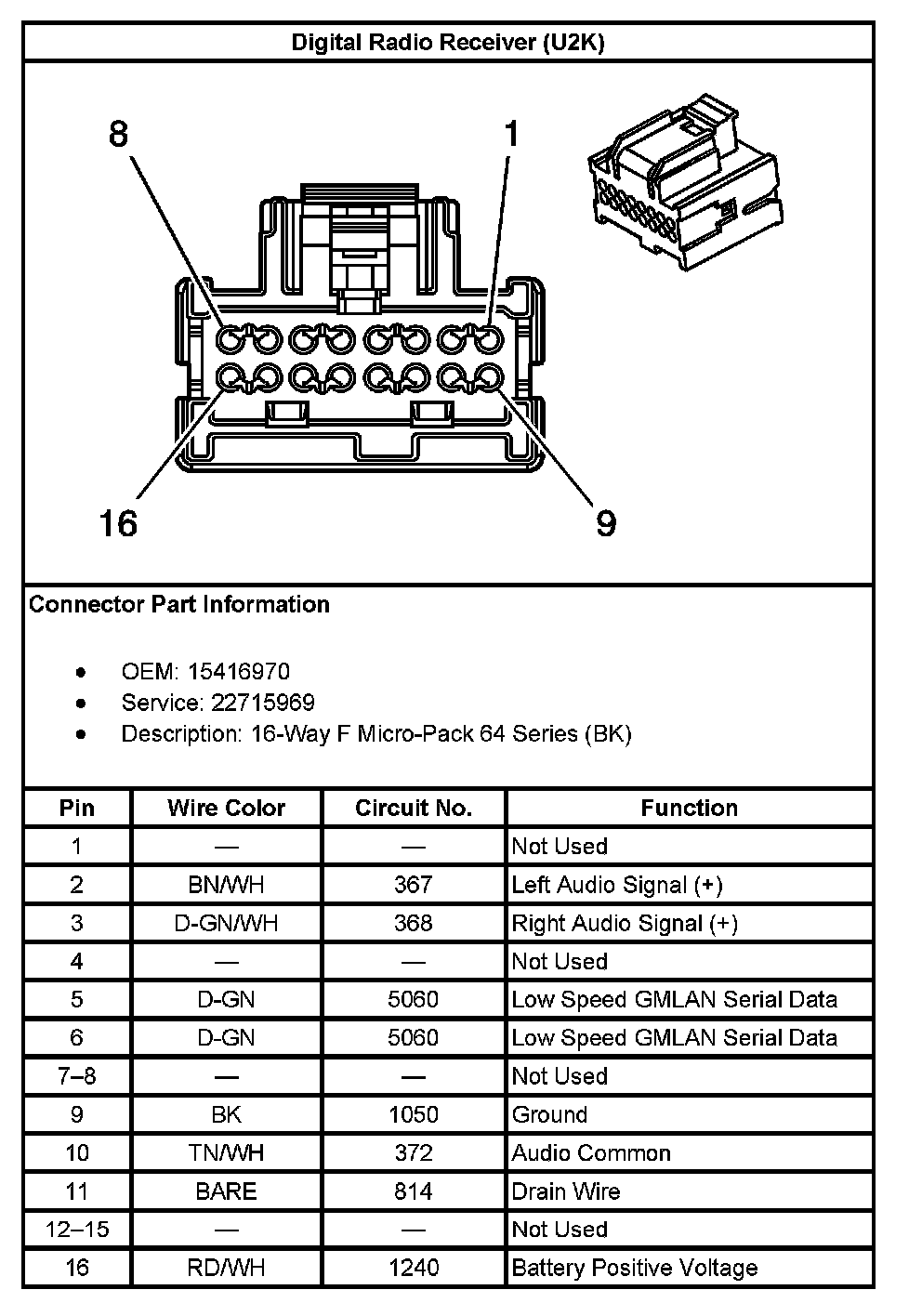 Digital Radio Receiver (With RPO Code U2K):