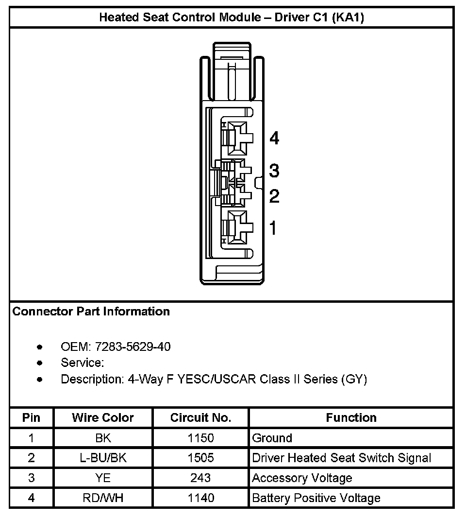 Heated Seat Control Module - Driver C1 (With RPO Code KA1):