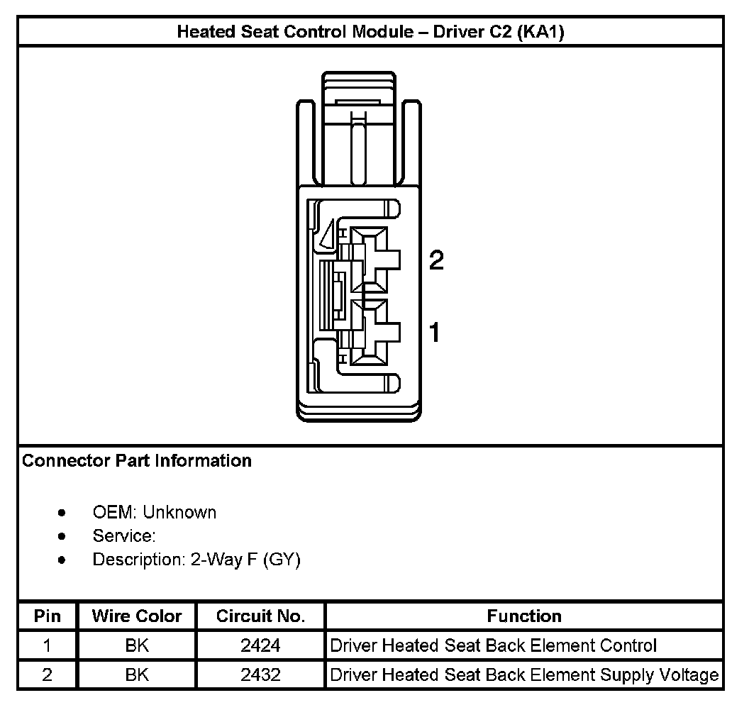Heated Seat Control Module - Driver C2 (With RPO Code KA1):