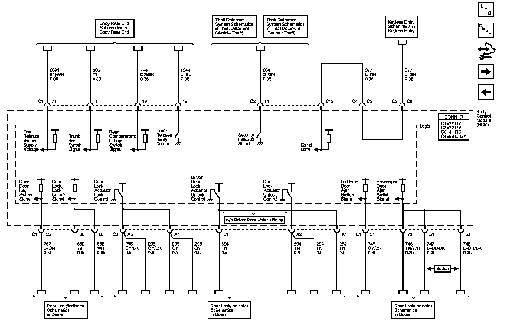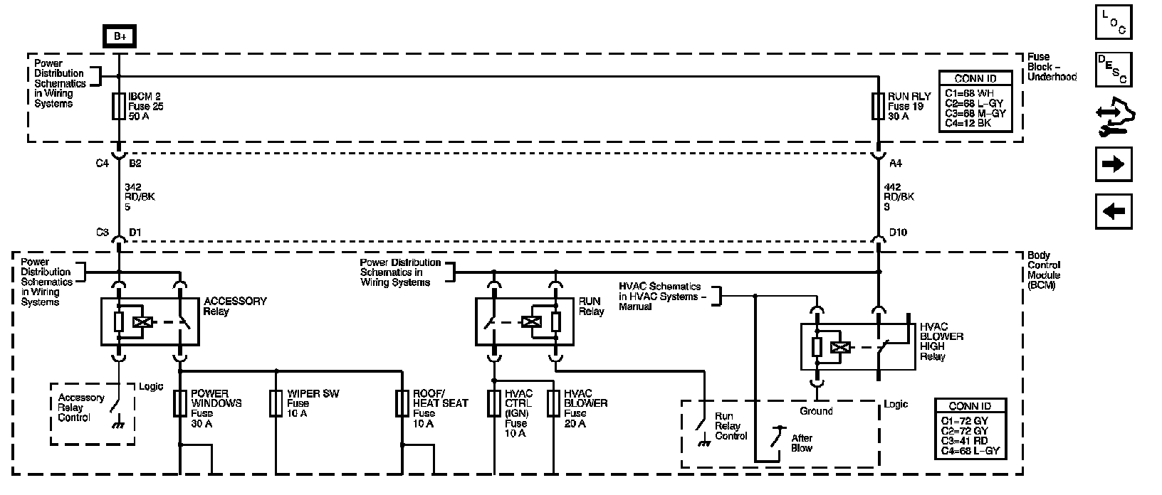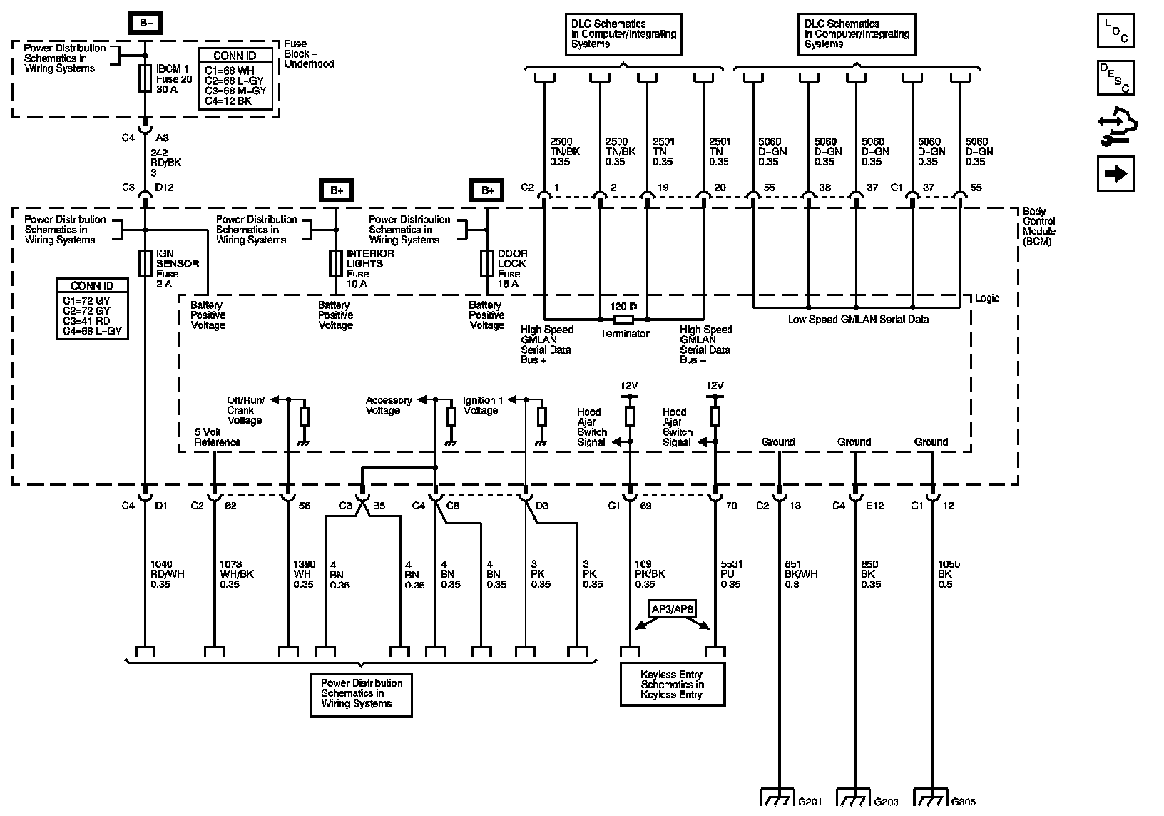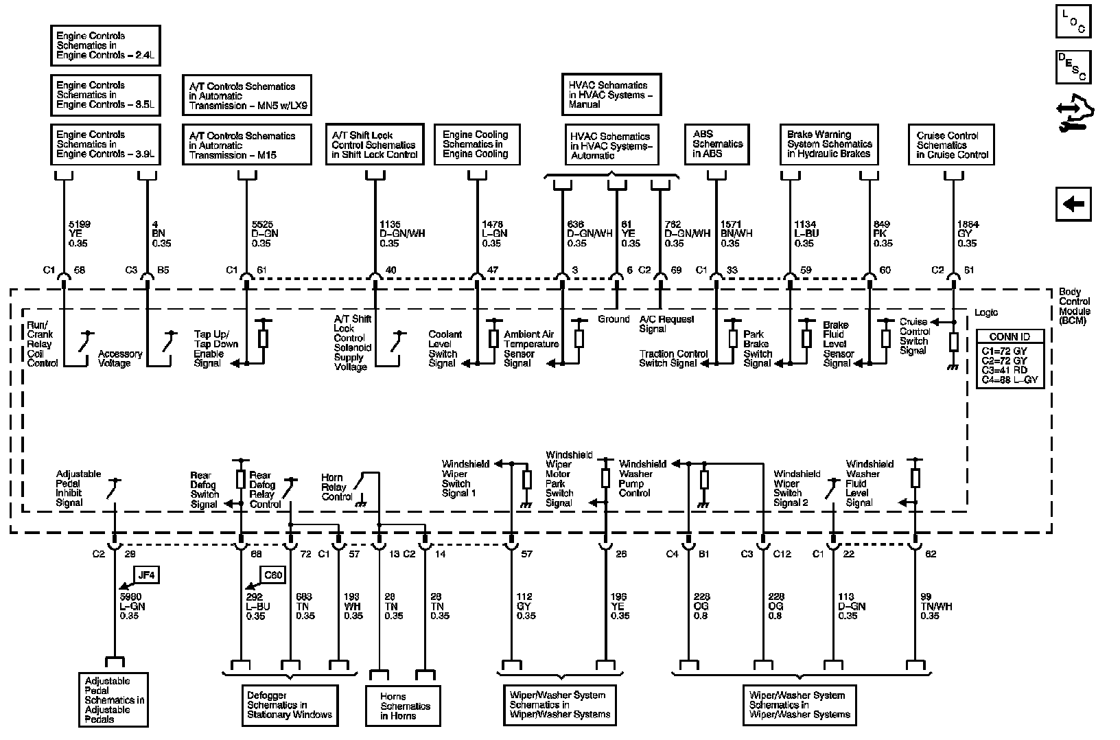 The locations for the Connectors, Grounds, Splices, and Grommets shown within these diagrams can be found via their numbers at Vehicle Locations.