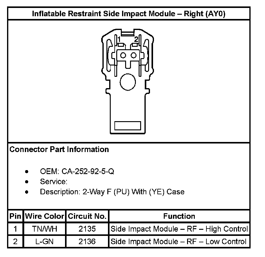 Inflatable Restraint Side Impact Module - Right (With RPO Code AY0):