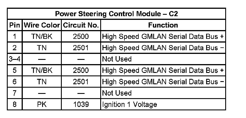 Power Steering Control Module - C2: