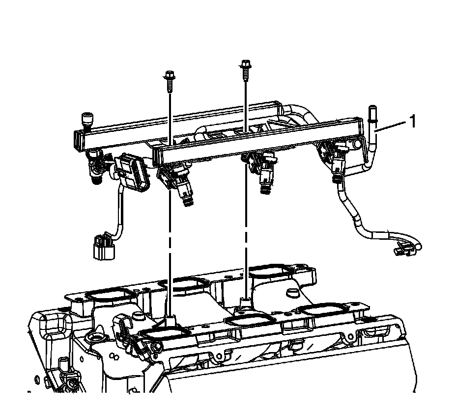 10. Remove the fuel injector rail bolts.