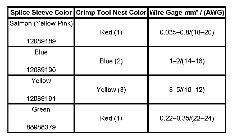 4. Select the proper duraseal splice sleeve according to the wire size. Refer to the above table at the beginning of the repair procedure for the color coding of the duraseal splice sleeves and the crimp tool nests.