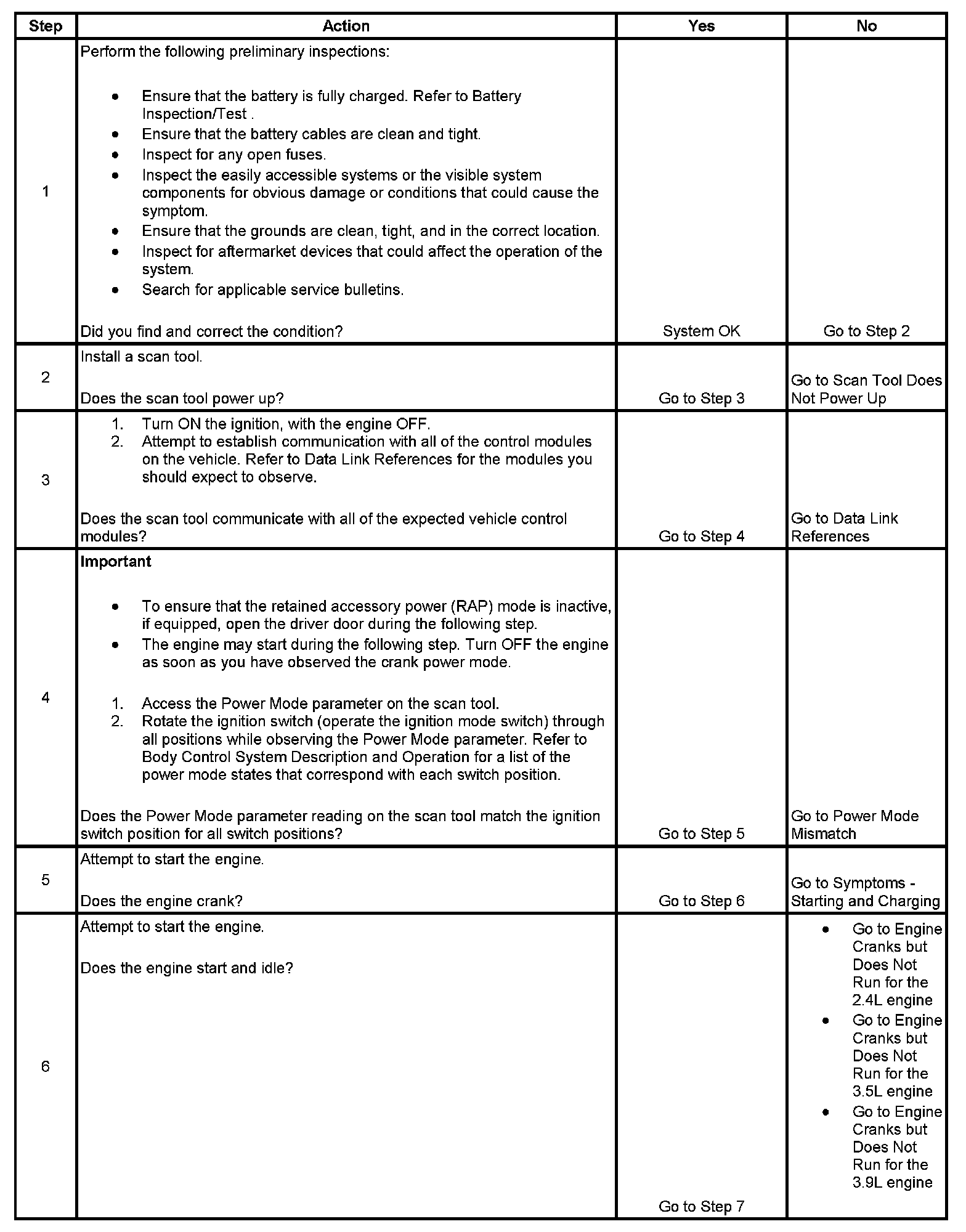 3. Lack of communication may be due to a particular malfunction of a serial data circuit. The link to "Data Link References" will provide a list of modules and the associated data network no communication diagnostic link.