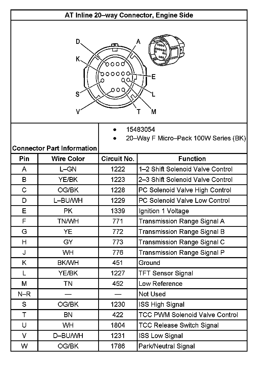 A/T Inline 20-Way Connector, Engine Side