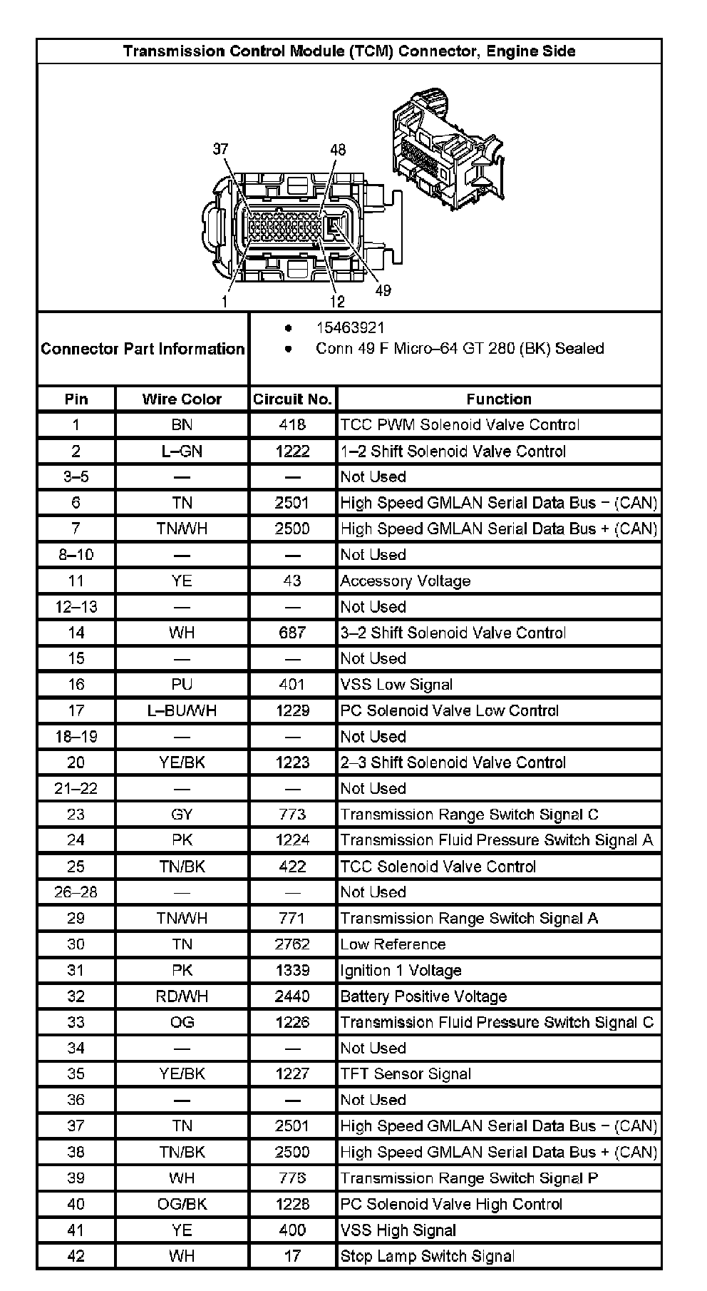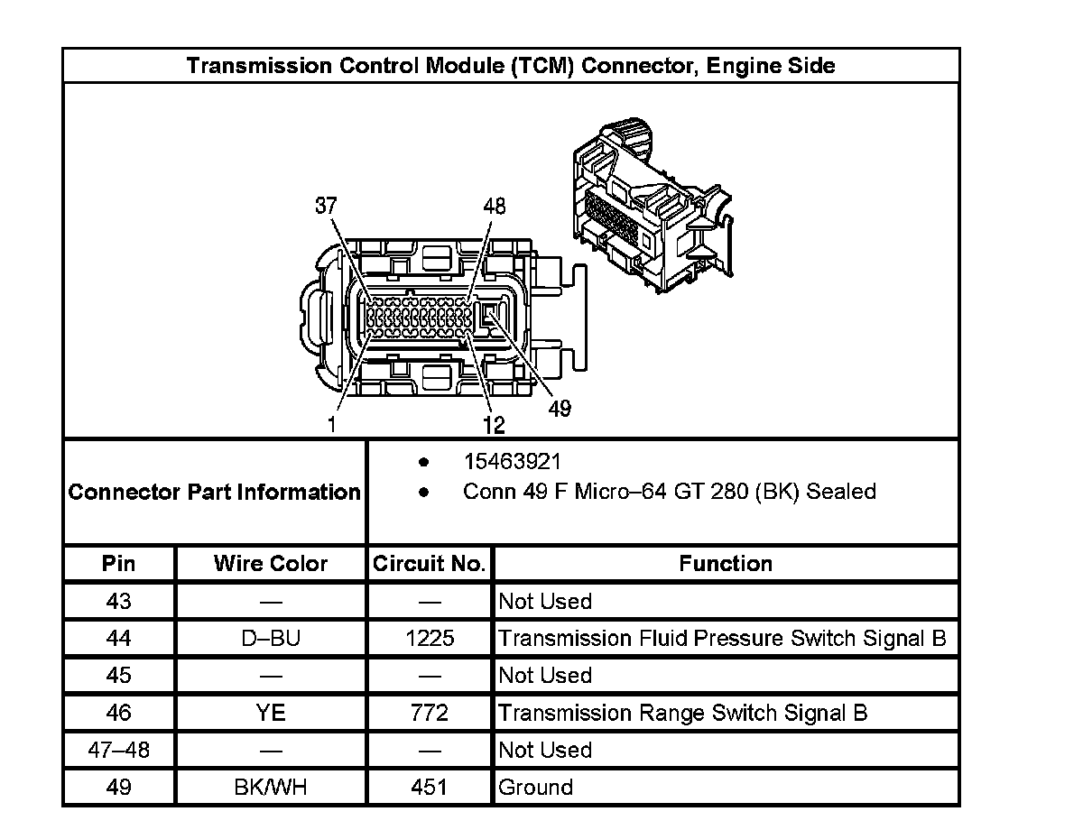 Transmission Control Module (TCM) Connector, Engine Side: