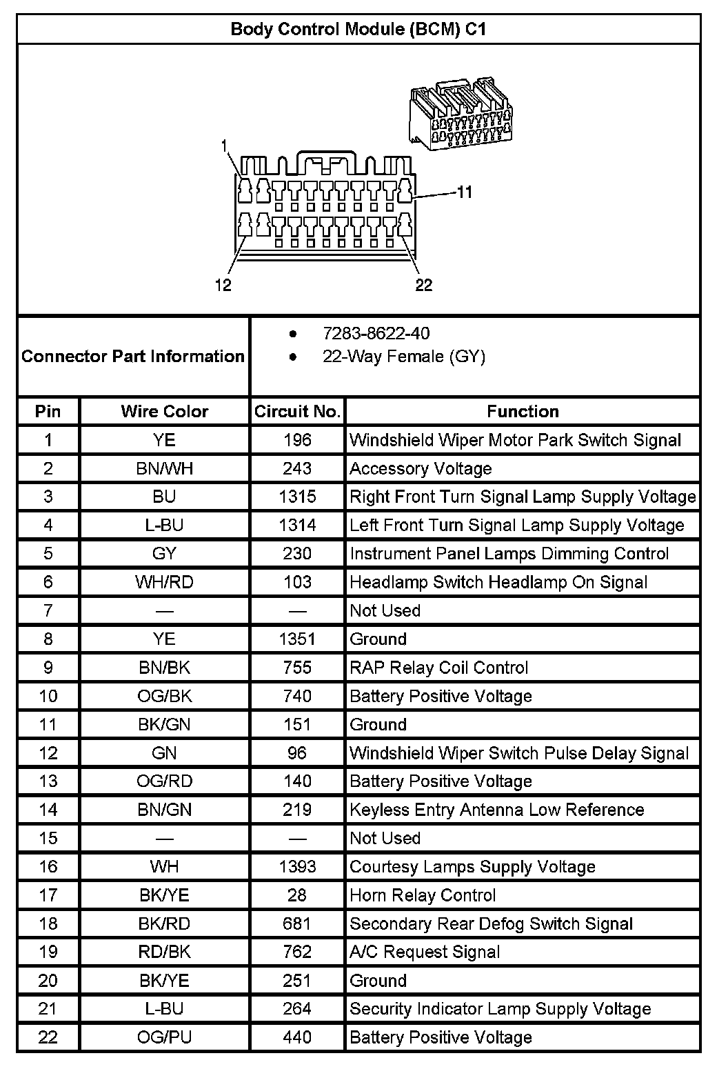 Body Control Module (BCM) C1: