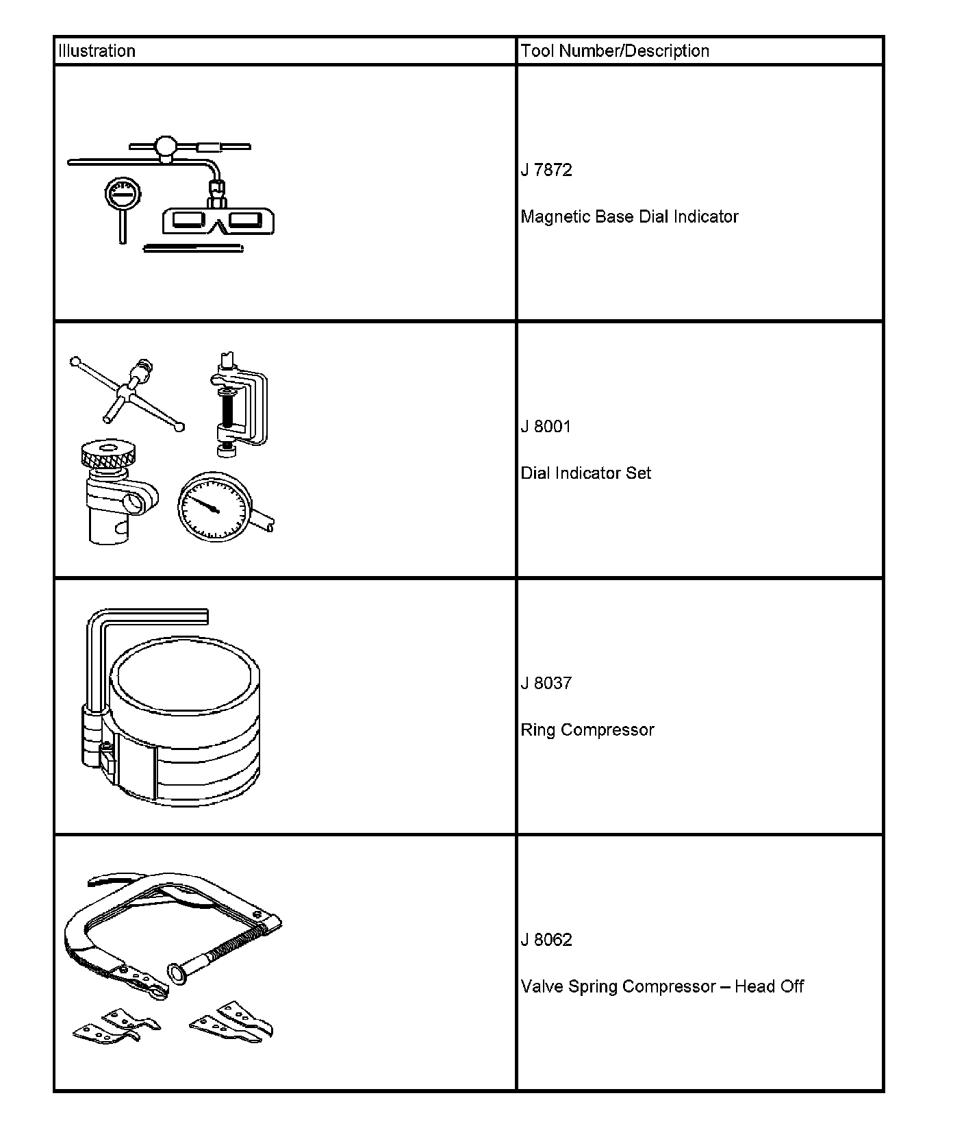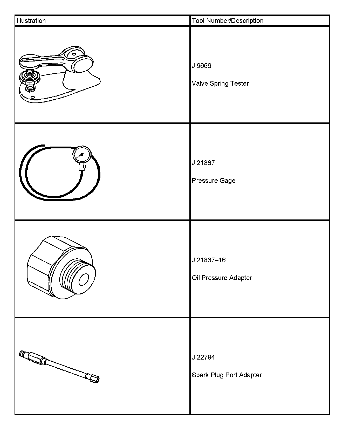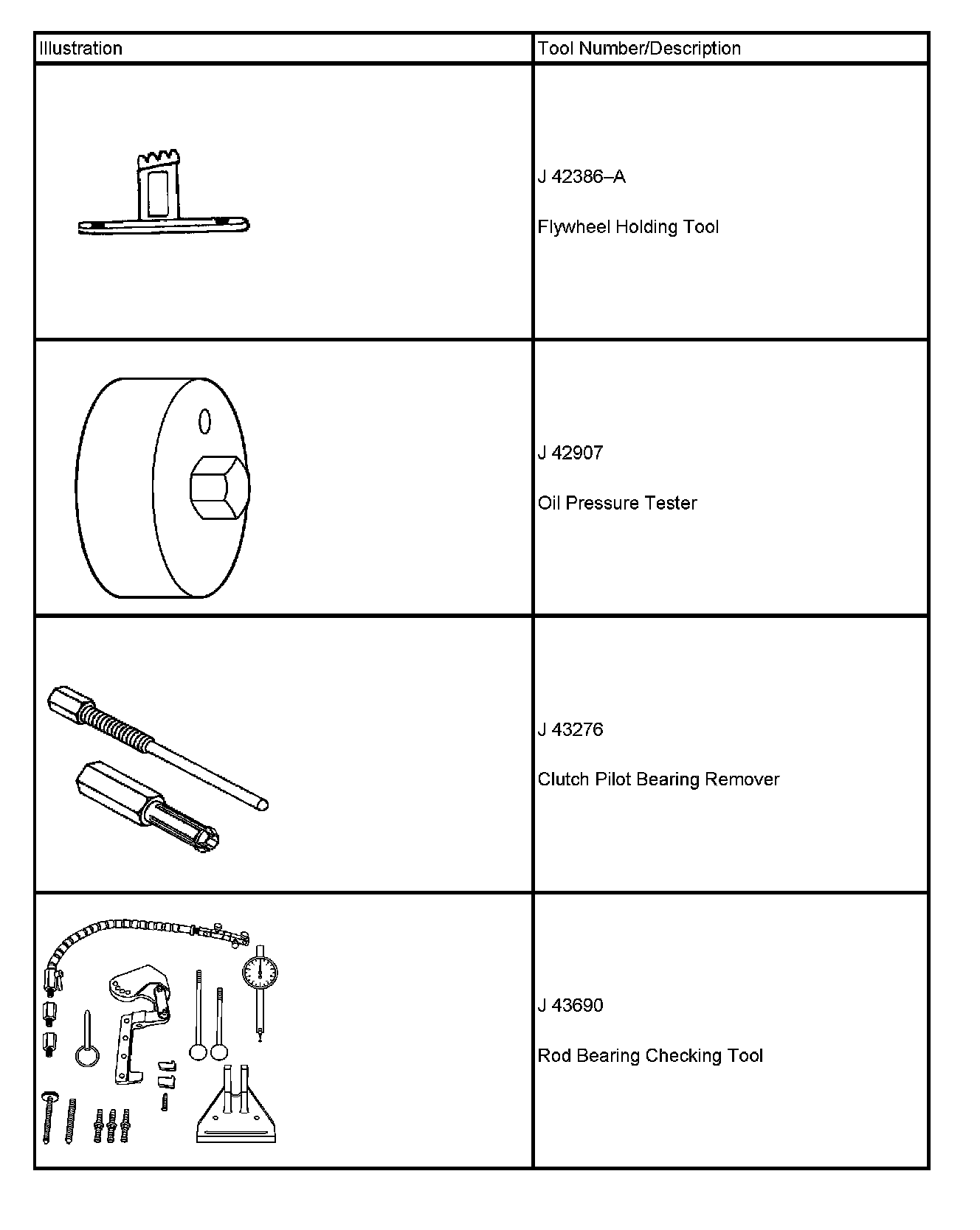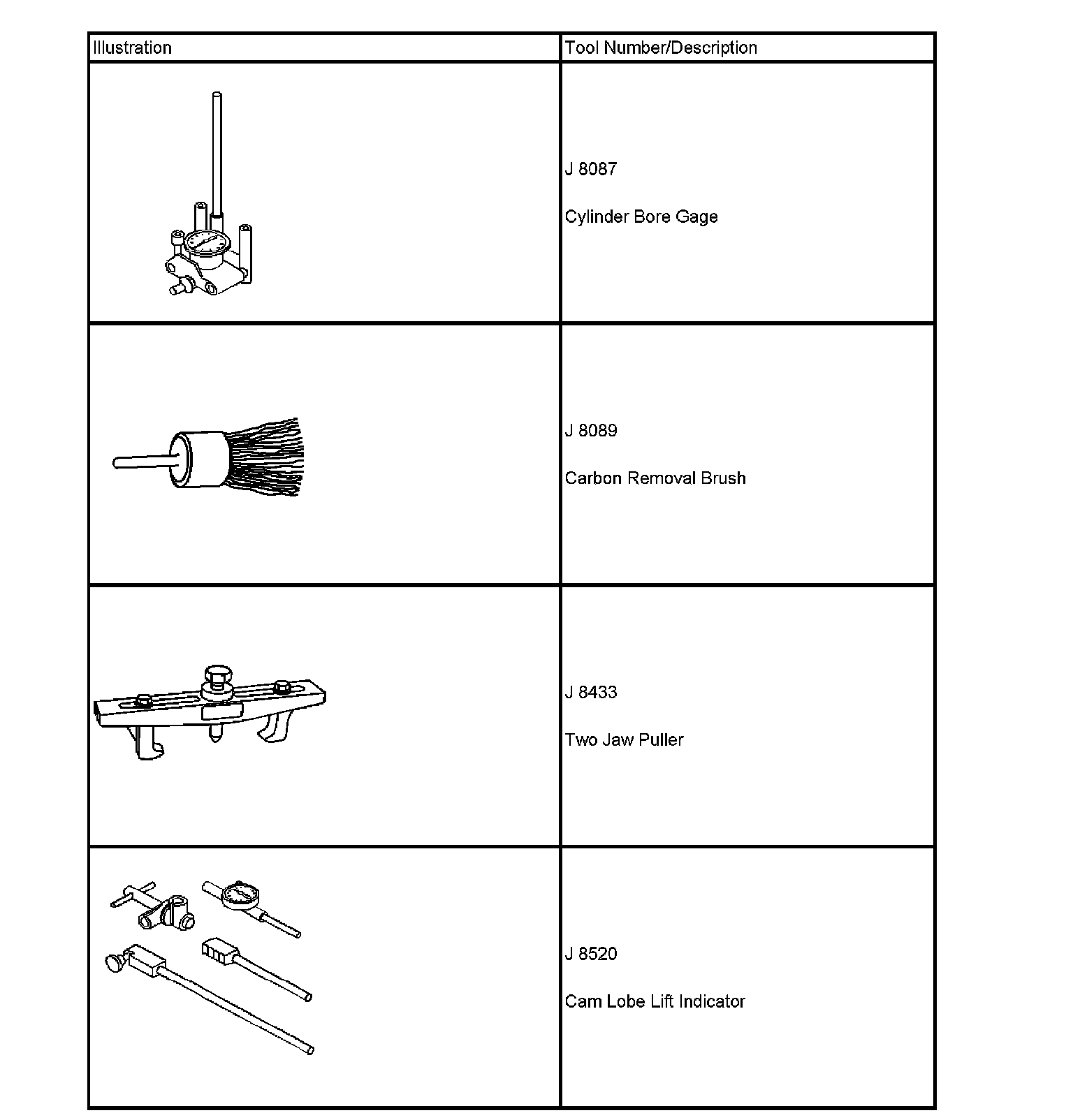 Special tools are listed and illustrated throughout this section, with a complete listing at the end of the section. These tools, or their equivalents, are specially designed to quickly and safely accomplish the operations for which they are intended. The use of these special tools also minimize possible damage to engine components. Some precision measuring tools are required for inspection of certain critical components. Torque wrenches and a torque angle meter are necessary for the proper tightening of various fasteners.