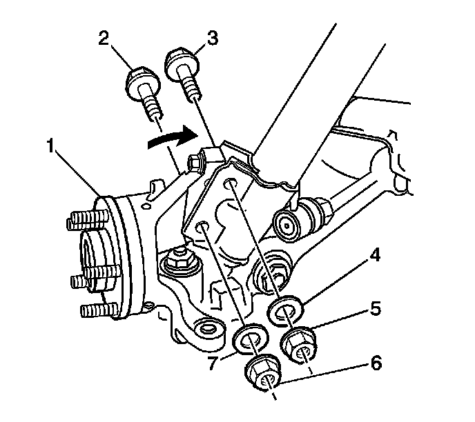 5. Remove and discard the 2 bolts (2,3) that retain the strut to the knuckle.