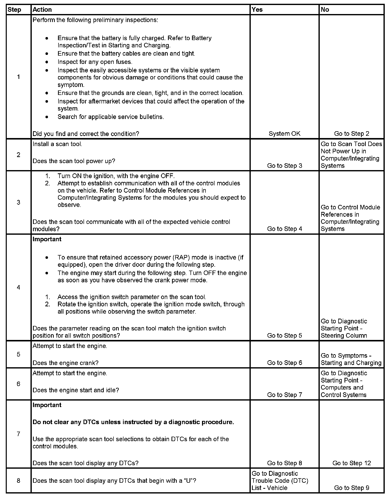 8. This step insures that all data link communication DTCs are diagnosed before system level DTCs.