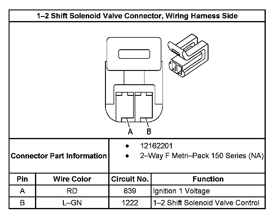 1-2 Shift Solenoid Valve Connector, Wiring Harness Side: