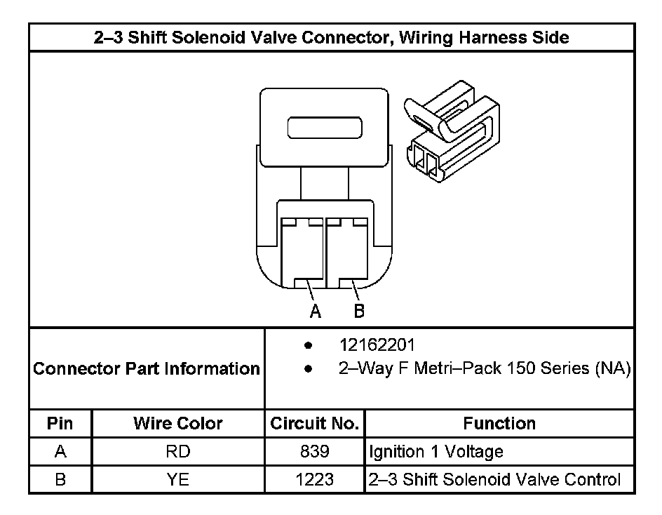 2-3 Shift Solenoid Valve Connector, Wiring Harness Side: