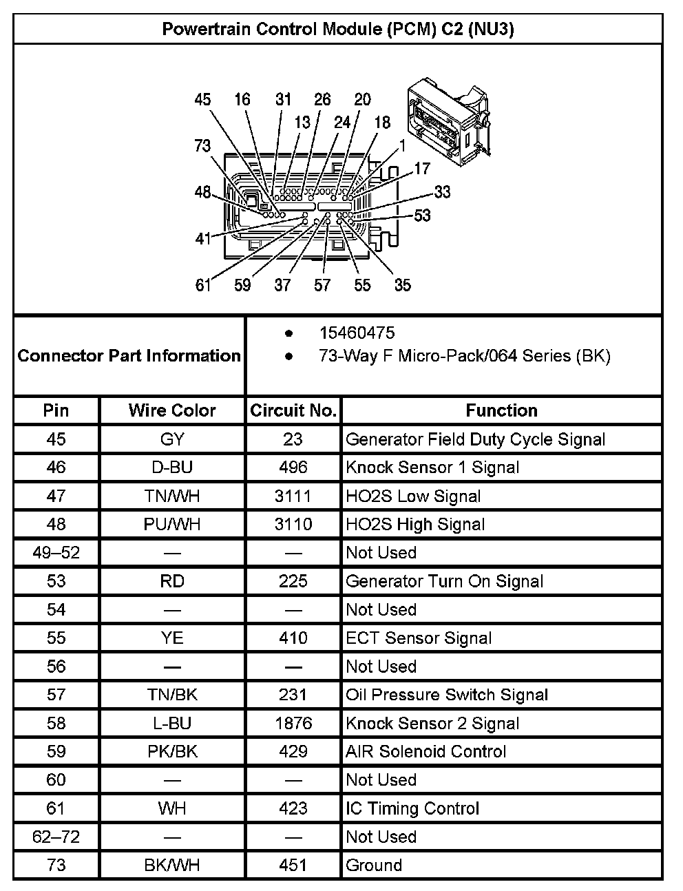 Powertrain Control Module (PCM) C2 (With RPO Code NU3) (Part 1):