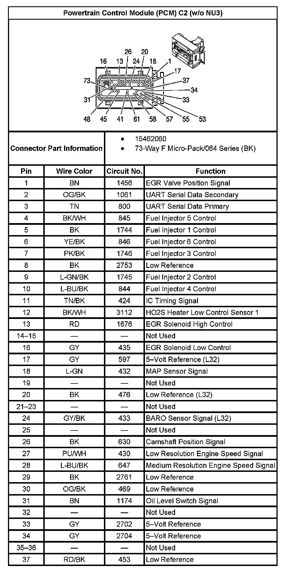 Powertrain Control Module (PCM) C2 (Without RPO Code NU3) (Part 1):