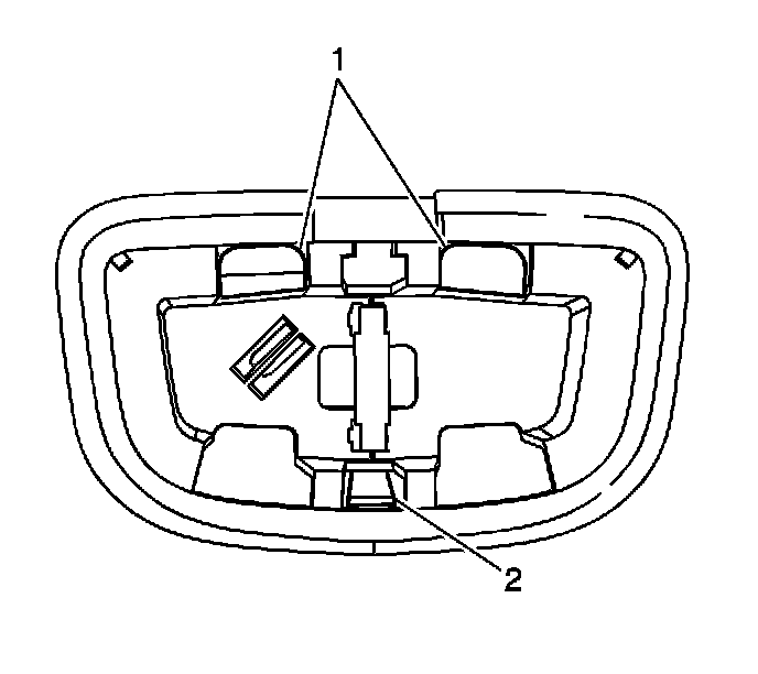 3. Disengage the retainer (2). Lower the lamp bezel from the headliner.