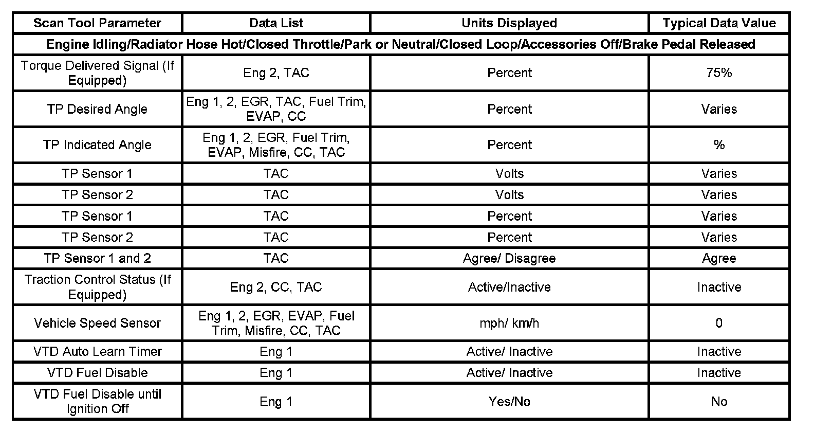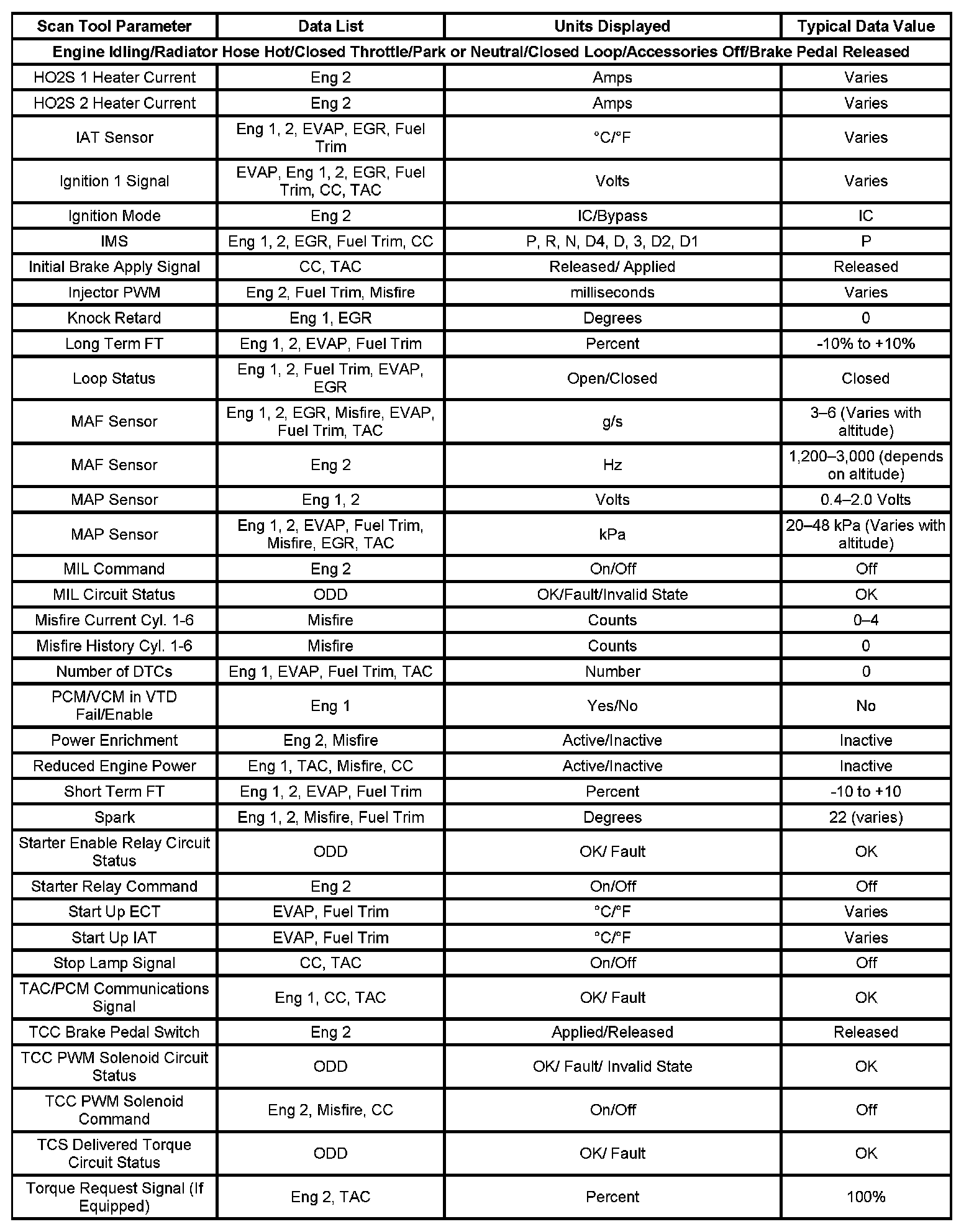 Only the parameters listed below are referenced in this service data for use in diagnosis. If all values are within the typical range described below, refer to Symptoms - Computers and Control Systems for diagnosis. - Symptoms - Engine Controls