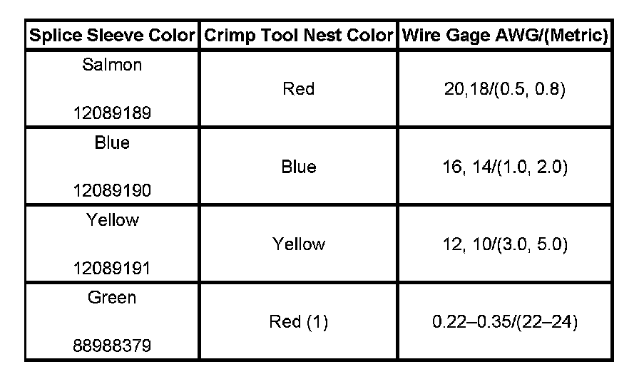 5. Select the proper duraseal splice sleeve (2) and the required crimp nest tool, refer to the Crimp and Seal Splice Table.