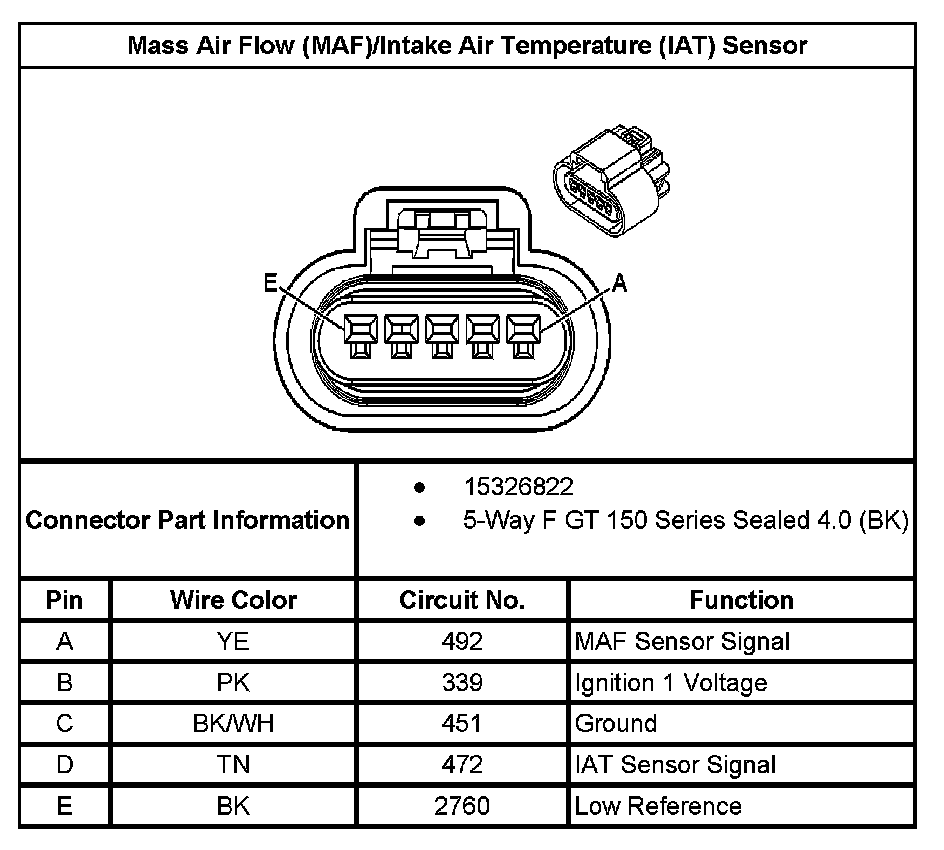 Mass Air Flow (MAF) / Intake Air Temperature (IAT) Sensor: