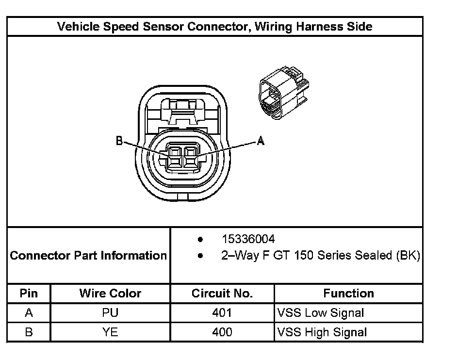 Vehicle Speed Sensor Connector, Wiring Harness Side: