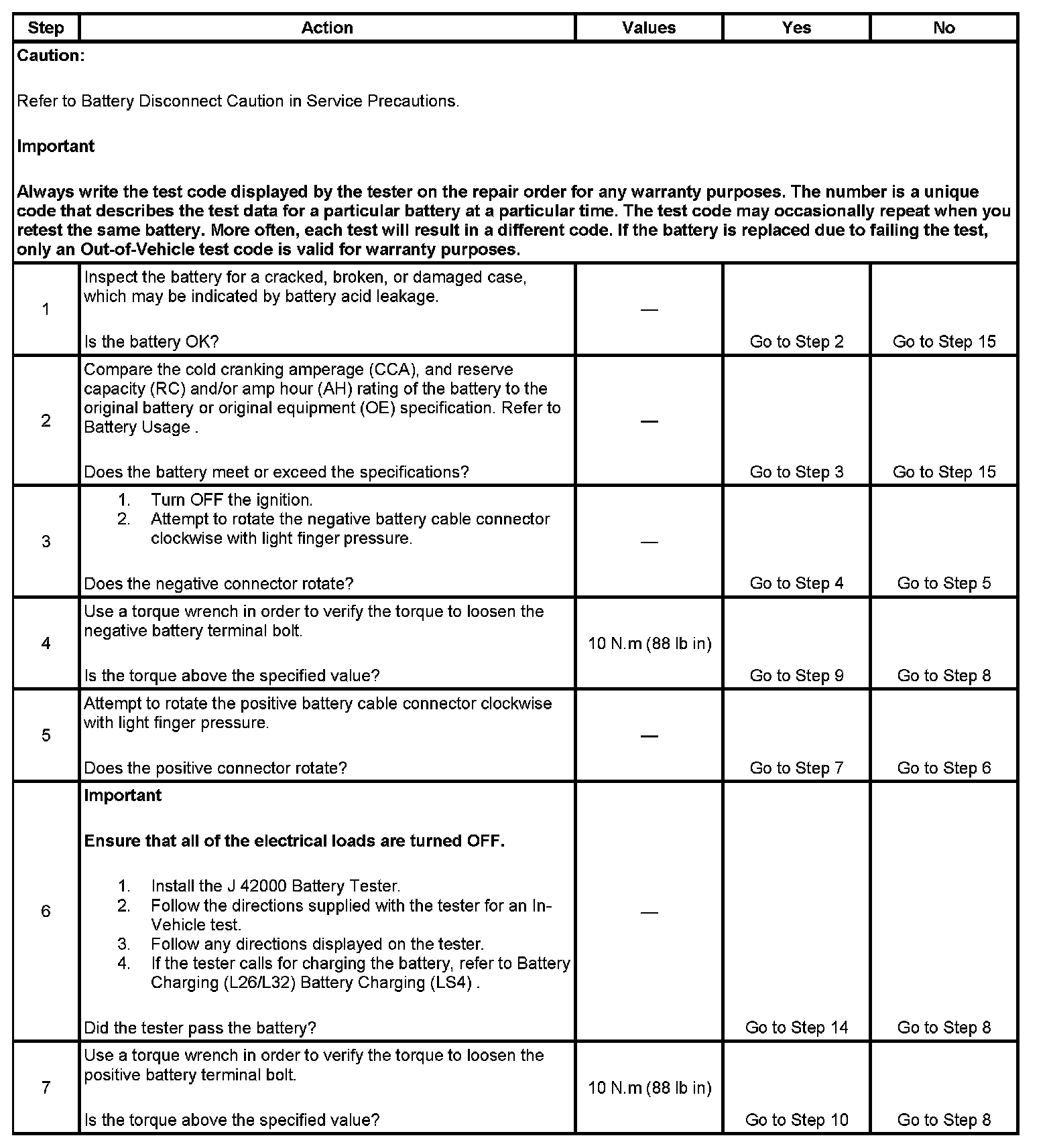- The battery test using the J 42000 requires correct connections to the battery terminals. A failure to obtain the correct connections during the test may result in a failed test on a good battery.