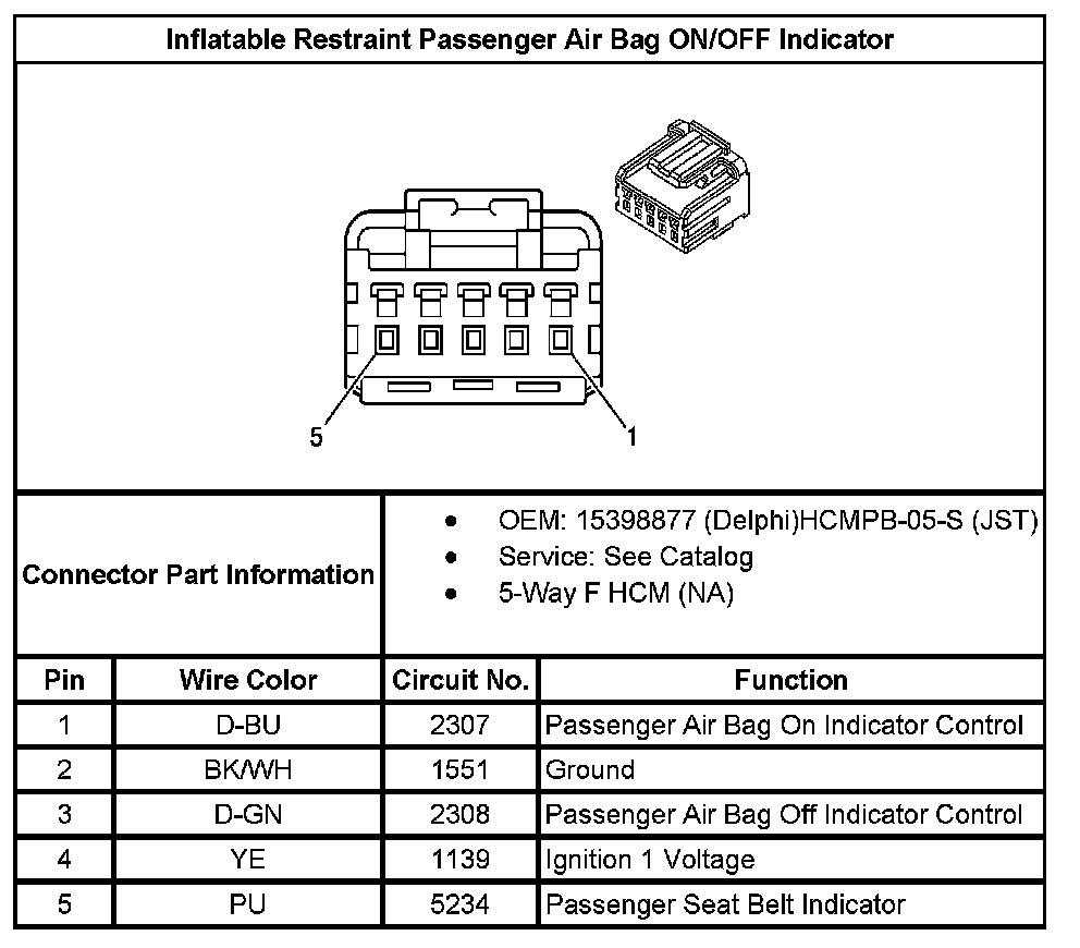 Inflatable Restraint Passenger Air Bag ON/OFF Indicator: