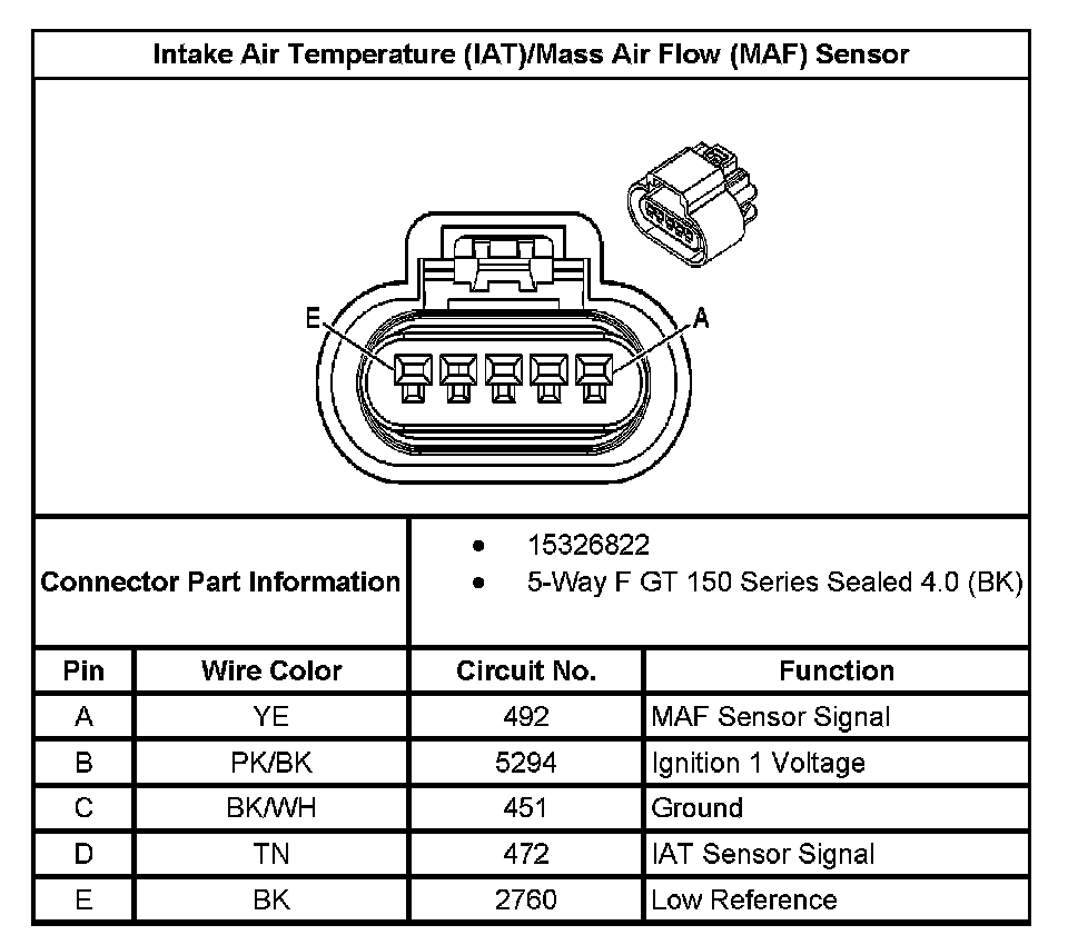 Intake Air Temperature (IAT) / Mass Air Flow (MAF) Sensor: