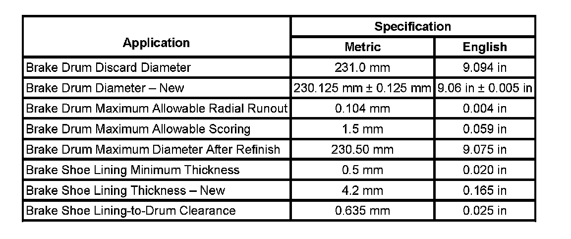 Drum Brake Component Specifications: