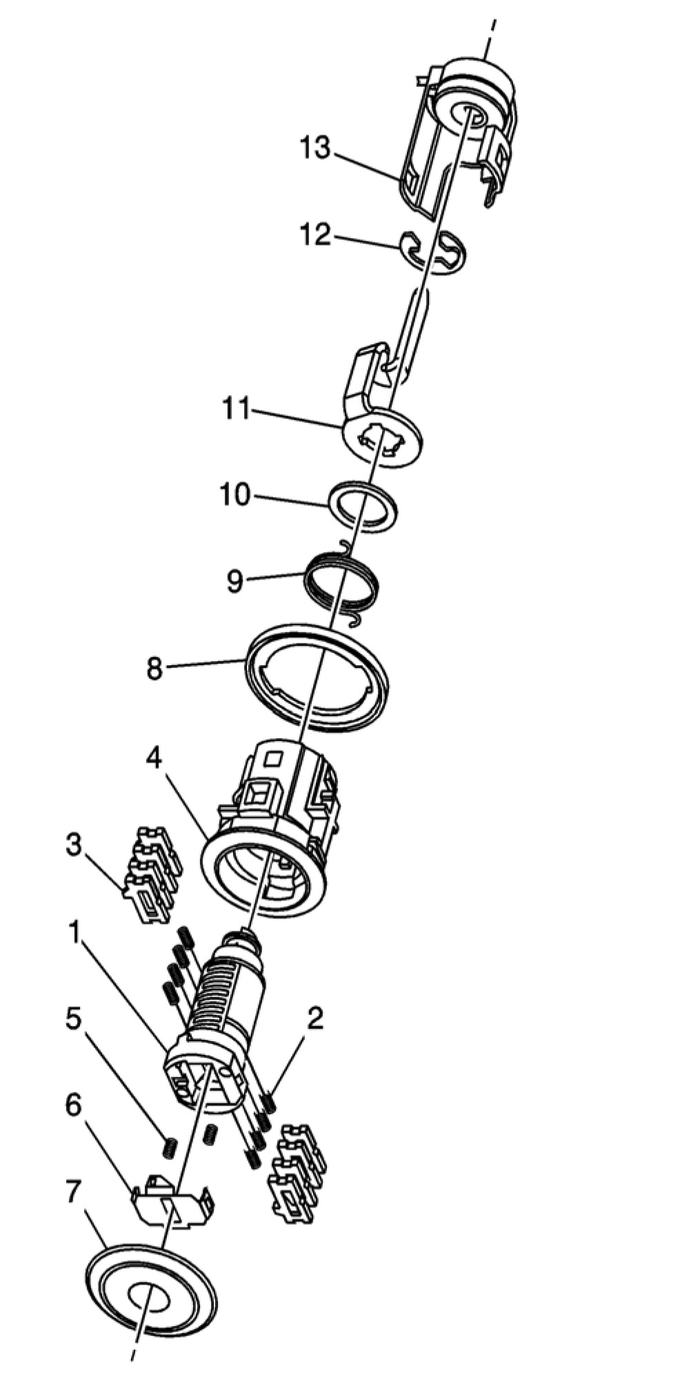 Important: The ignition lock cylinder tumblers (3) are not self-retaining and must be held in place if the key is not fully inserted into the lock cylinder.