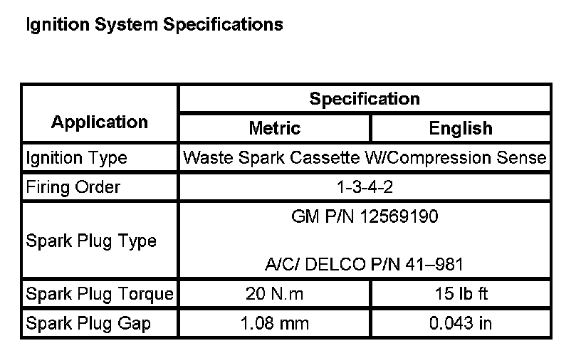 Ignition System Specifications: