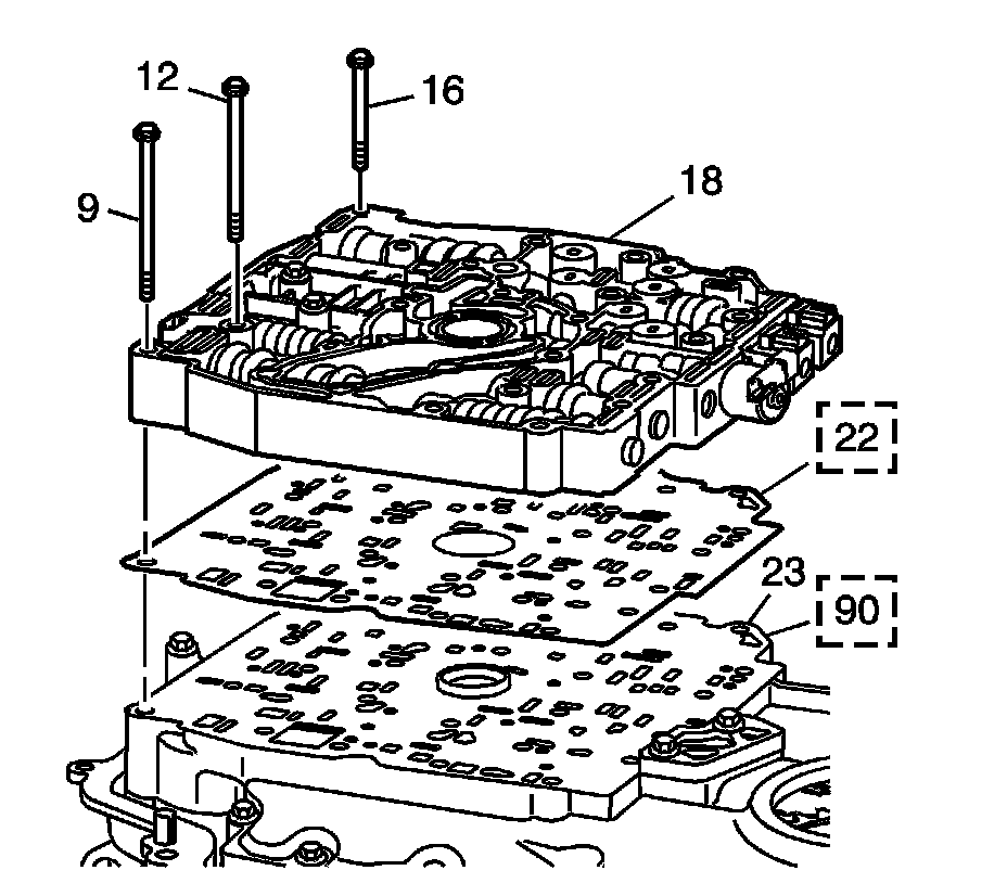 2. Install the control valve body assembly (18) onto the gasket (22) or spacer plate with bonded gaskets (90).