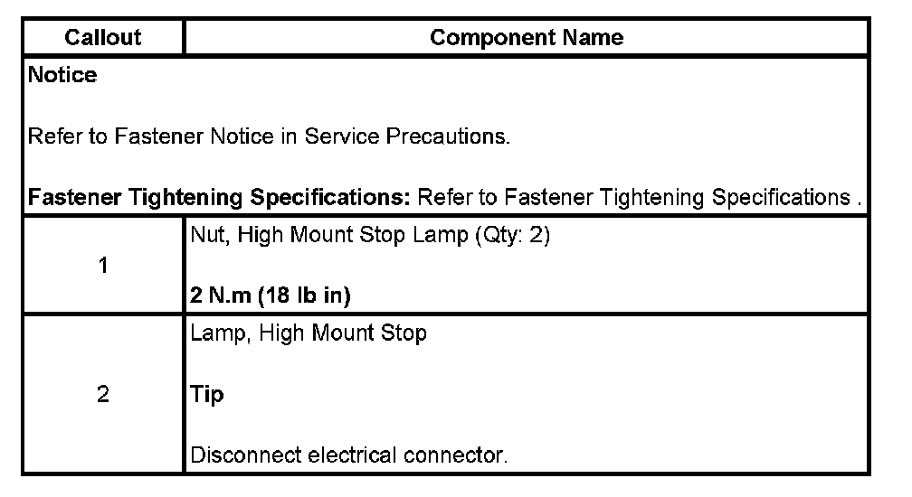 Center Mounted Brake Lamp: Service and Repair