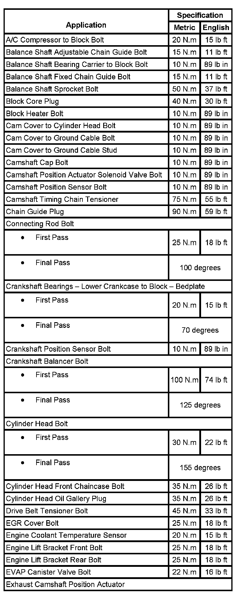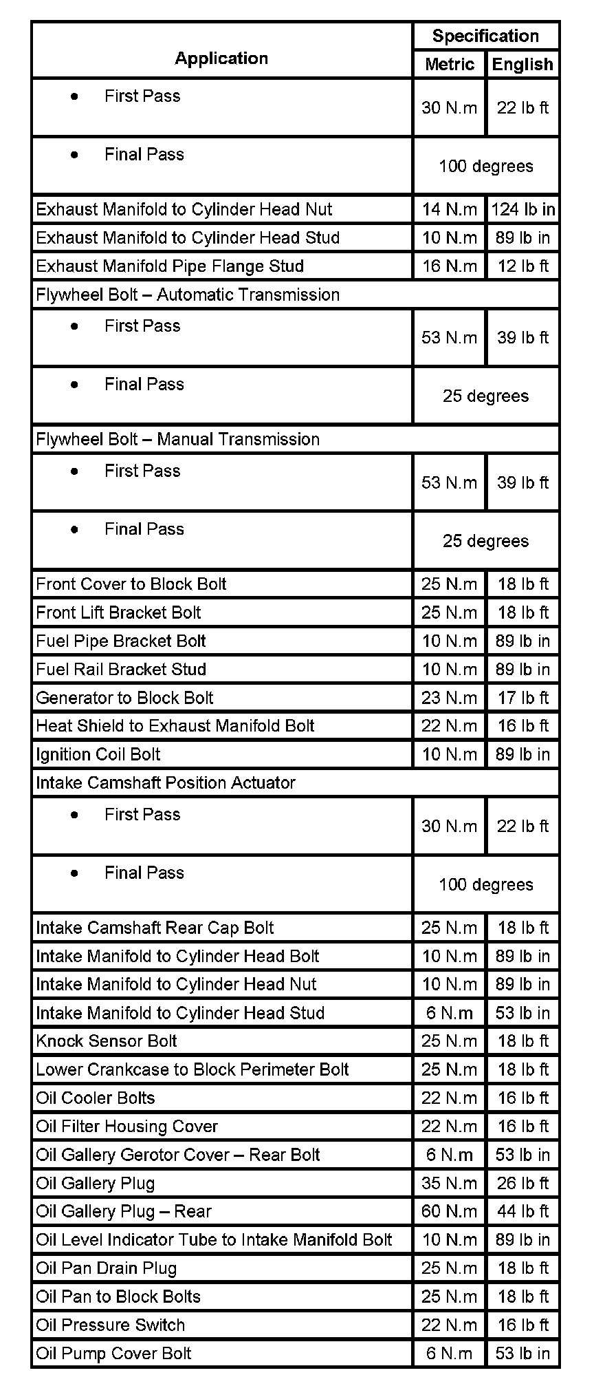 Fastener Tightening Specifications (Part 1):