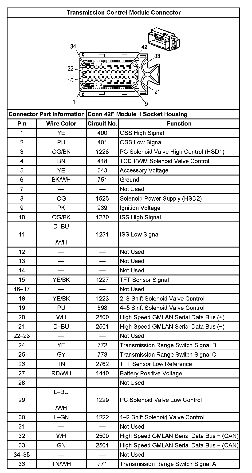 Transmission Control Module Connector 1: