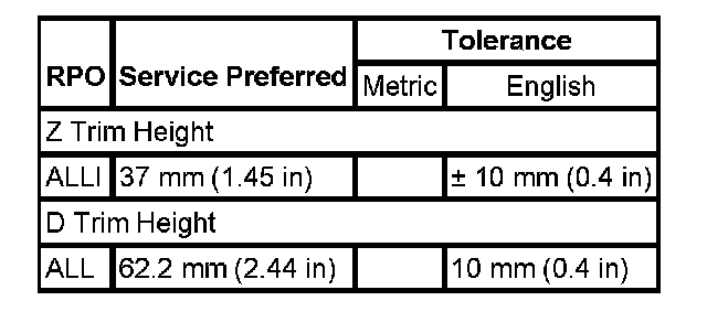 Trim Height Specifications: