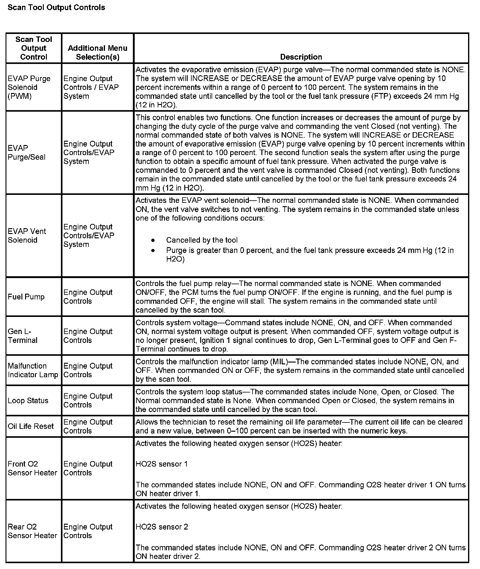 Scan Tool Output Controls: