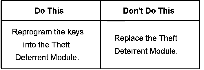 Engine Will Not Crank After A Battery Disconnect, Dead Battery Condition Or After A Reprogramming Event, Theft Deterrent Light Illuminated, DTC B3060 Stored, One Key Starts Vehicle But Second One Does Not (Reprogram Keys into Theft Deterrent Module)