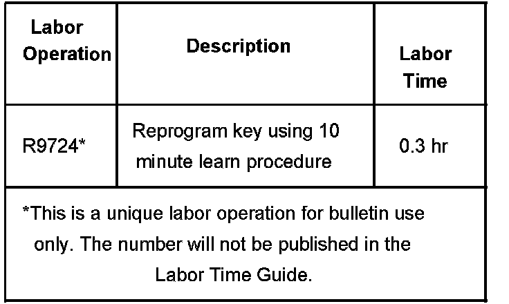 If the 30 minute key learn procedure is used, the additional labor time must be authorized by your service manager.